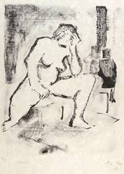 1961. Lithografie / Pinsel- & Kreidelithografie, in Schwarz, auf grobfasrigem kräftigem Japanbütten. – Originale Künstlergrafik, von Rudi Lesser. – Auflage Exemplar Nr. 5/10. – 48,0 x 37,5 cm (Darstellung / Druckbild), 67 x 49 cm (Blatt).
