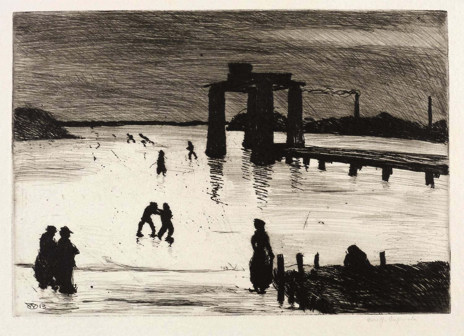 1913. Radierung / Strichätzung & Kaltnadel, in Schwarz, auf wolkigem feinem Velin. – Originale Künstlergrafik, von Wilhelm Oesterle. – 20,5 x 29,2 cm (Darstellung / Platte), 33 x 46 cm (Blatt).