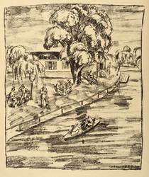 Aus: Kriegszeit. Künstlerflugblätter (Berlin: Paul Cassirer & Alfred Gold 1914-1916). – Nicht handsigniert. Im Stein rechts unten Signatur und Jahr: ″NERLINGER 15″ Darunter typografischer Titel: ″Lazarett in Südende″. – Vollständige Ausgabe der Kriegszeit Jahrgang 1915, Nr. 43, mit der Lithografie ″Romulus-Sonnino und Remulus- Salandra″ von August Gaul sowie zwei Lithografien zu ″Gabriele d'Annunzio″ von Hans Meid. – In den Blattkanten altersbedingt gegilbt. Insgesamt guter Zustand.
