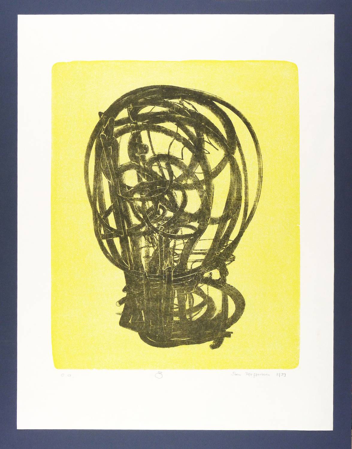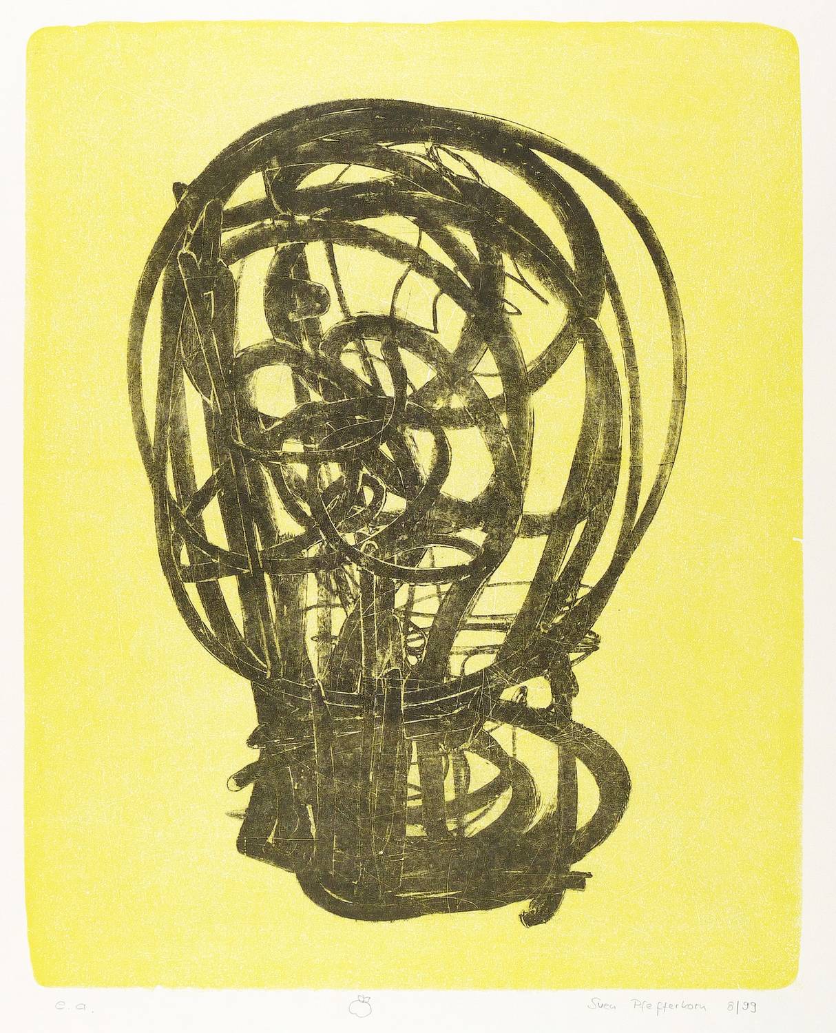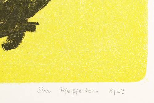 1999. Farblithografie / Pinsellithografie, in Gelb & Schwarz, auf weißem Karton. – Originale Künstlergrafik, von Sven Pfefferkorn. – Künstlerexemplar (e.a.). – 53,7 x 43,0 cm (Darstellung), 72,5 x 55 cm (Blatt).