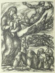 1915. Lithografie / Kreidelithografie, partiell geschabt, in Schwarz, auf Velin. – Originale Künstlergrafik, von Otto Hettner. – 22,2 x 17,0 cm (Darstellung / Stein), 32 x 25 cm (Blatt).