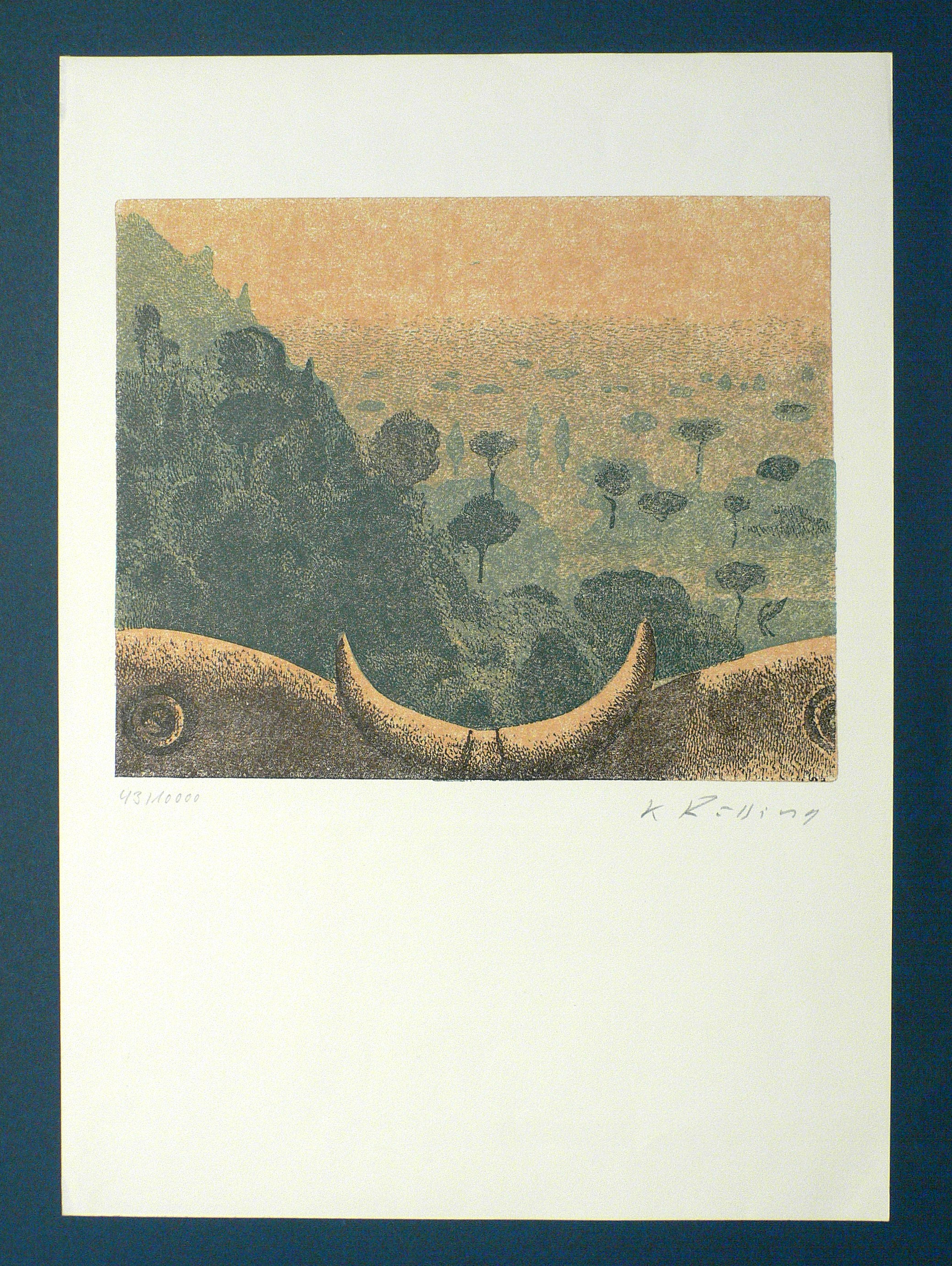 Karl Rössing (1897 Gmunden - 1987 Wels). Österreichischer Grafiker und Buchillustrator, namhafter Vertreter des Surrealismus und der Neuen Sachlichkeit. 1913-17 Studium an der Königlichen Kunstgewerbeschule in München bei Richard Riemerschmid und Fritz Helmuth Ehmcke. Ab 1915 Illustrationen in der Technik des Holzstichs. 1919 Teilnahme an der Münchner Sezession und Bekanntschaft mit Rainer Maria Rilke. 1921 Berufung an die Volkwangschule nach Essen. Ab 1926 Professor für Buchgewerbe und Grafik. Ab Mitte der 1920er Jahre verstärkt Malerei. 1925 Teilnahme an der Ausstellung "Neue Sachlichkeit" in Mannheim. 1930 erste Italienreise. 1934 Dozent für Malerei und Zeichnen an der Staatlichen Hochschule für Kunsterziehung in Berlin, ab 1939 Professor auf Lebenszeit. Bei einem Bombenangriff 1944 wurden zahlreiche Werke zerstört. Seine Kriegstraumata verarbeitete er u.a. in Briefen an Alfred Kubin. Ab 1947-60 an der Staatlichen Akademie der Bildenden Künste in Stuttgart, ebenda Professor auf Lebenszeit, 1953-55 Rektor, 1955-57 Prorektor.