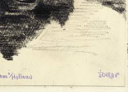 Um 1925. Zeichnung / Graphitzeichnung, auf Karton. – Originale Künstlergrafik, von Julius Schrag. – Unikat. – 13,8 x 12,3 cm (Darstellung / Einfassungslinie), 15,5 x 13,0 cm (Passepartout).