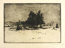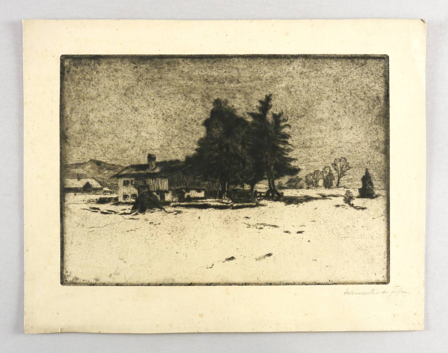 Um 1910. Radierung / Strichätzung & Kaltnadel, in Schwarz, mit Plattenton, auf gelbem Kupferdruck. – Originale Künstlergrafik, von Fritz von Hellingrath. – 23,0 x 32,8 cm (Darstellung / Platte), 31 x 40 cm (Blatt).