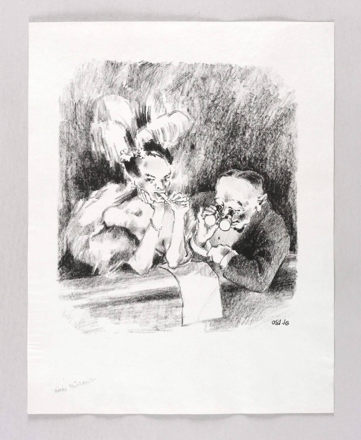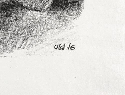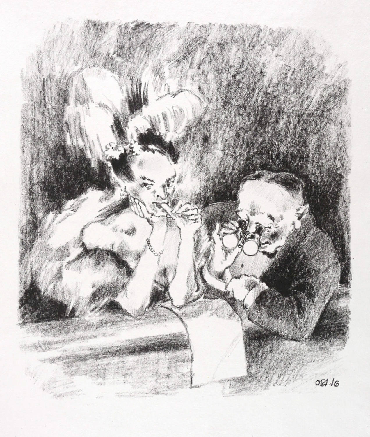 Verso in Bleistift signiert: ″O. Starke″. Dazu bezeichnet: ″Probeabzug aus der Druckerei Lassally, Berlin″. Im Stein rechts unten Signatur und Jahr: ″OSt. 16″. – Blatt Nr. 2 aus der Folge ″Die neue Gesellschaft″, die 1916 in der Zeitschrift ″Bildermann″ erschien (Der Bildermann. Steinzeichnungen fürs deutsche Volk, Berlin: Paul Cassirer 1916. - Hier der autorisierte Probedruck vor der Auflage für den ″Bildermann″. – Tadellos erhalten. Sehr guter Zustand.