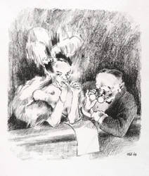 Ottomar Starke (1886 Darmstadt - 1962 Baden-Baden). Deutscher Bühnenbildner und Grafiker. Studium an der Königlichen Kunstgewerbeschule München unter anderem bei Maximilian Dasio. Anschließend Tätigkeit als Bühnenbildner in München, Frankfurt am Main und Mannheim. 1912 Berufung zum Chef des Ausstattungswesens am Opern- und Schauspielhaus in Frankfurt am Main. Während des Ersten Weltkriegs Hinwendung zu druckgrafischen Arbeiten. 1916 gibt Paul Cassirer seine Lithografie-Folge "Die neue Gesellschaft" in der Zeitschrift "Der Bildermann" heraus. Mit weiteren Lithografien beteiligte er sich 1914-16 an der Reihe "Kriegszeit. Künstlerflugblätter". 1920 gemeinsam mit Alfred Flechtheim Gründung der Kulturzeitschrift "Der Querschnitt - Das Magazin der aktuellen Ewigkeitswerte", Verbot 1936. Trotz seiner Mitgliedschaft in der NSDAP wurde er 1937 Opfer der Verfemung durch die Aktion "Entartete Kunst".