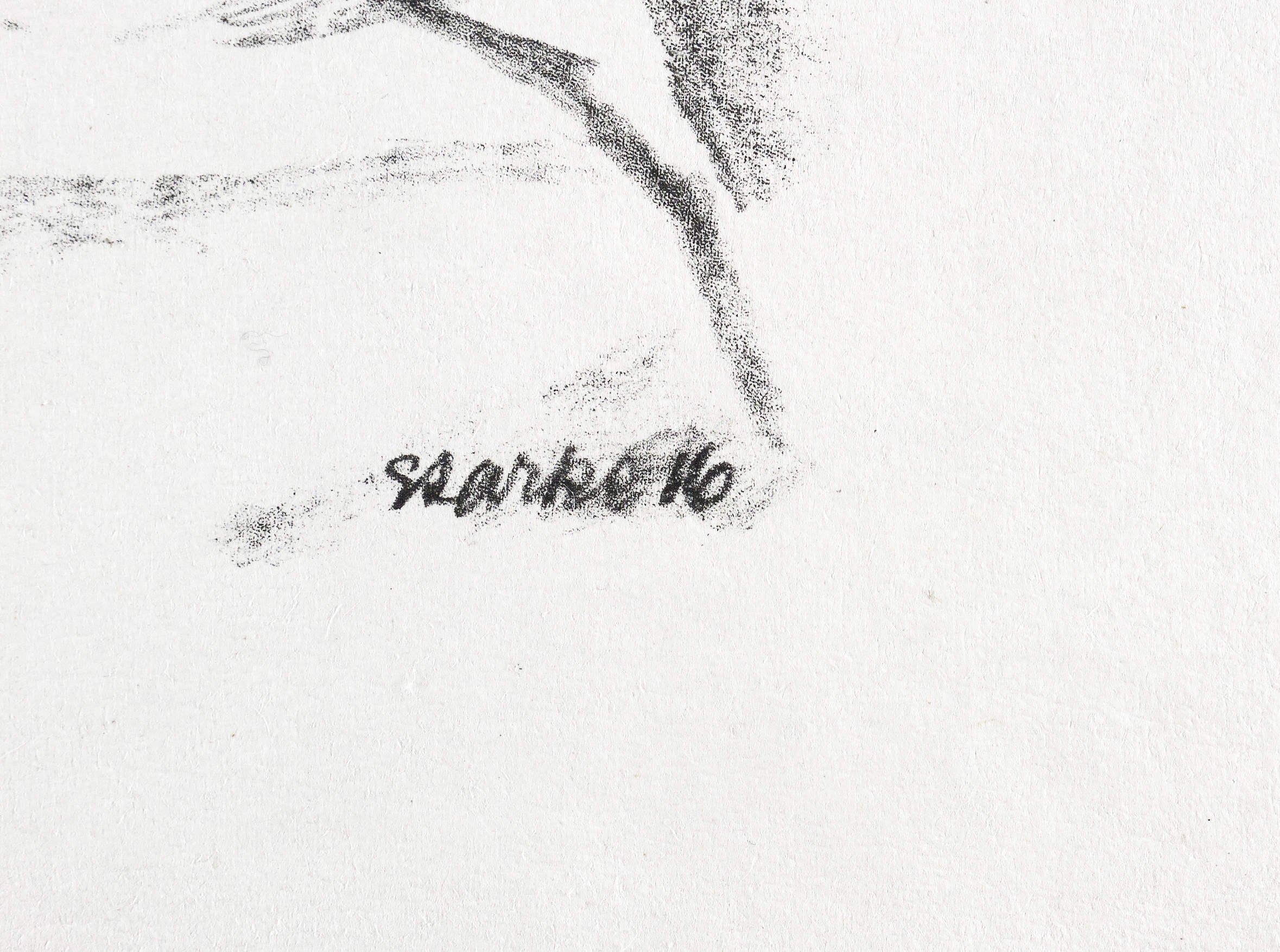 Verso in Bleistift signiert: ″O. Starke″. Dazu bezeichnet: ″Probeabzug aus der Druckerei Lassally, Berlin″. Im Stein rechts unten Signatur und Jahr: ″Starke 16.″ – Blatt Nr. 5 aus der Folge ″Die neue Gesellschaft″, die 1916 in der Zeitschrift ″Bildermann″ erschien (Der Bildermann. Steinzeichnungen fürs deutsche Volk, Berlin: Paul Cassirer 1916. - Hier der autorisierte Probedruck vor der Auflage für den ″Bildermann″. – Tadellos erhalten. Sehr guter Zustand.