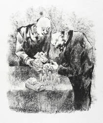 Ottomar Starke (1886 Darmstadt - 1962 Baden-Baden). Deutscher Bühnenbildner und Grafiker. Studium an der Königlichen Kunstgewerbeschule München unter anderem bei Maximilian Dasio. Anschließend Tätigkeit als Bühnenbildner in München, Frankfurt am Main und Mannheim. 1912 Berufung zum Chef des Ausstattungswesens am Opern- und Schauspielhaus in Frankfurt am Main. Während des Ersten Weltkriegs Hinwendung zu druckgrafischen Arbeiten. 1916 gibt Paul Cassirer seine Lithografie-Folge "Die neue Gesellschaft" in der Zeitschrift "Der Bildermann" heraus. Mit weiteren Lithografien beteiligte er sich 1914-16 an der Reihe "Kriegszeit. Künstlerflugblätter". 1920 gemeinsam mit Alfred Flechtheim Gründung der Kulturzeitschrift "Der Querschnitt - Das Magazin der aktuellen Ewigkeitswerte", Verbot 1936. Trotz seiner Mitgliedschaft in der NSDAP wurde er 1937 Opfer der Verfemung durch die Aktion "Entartete Kunst".