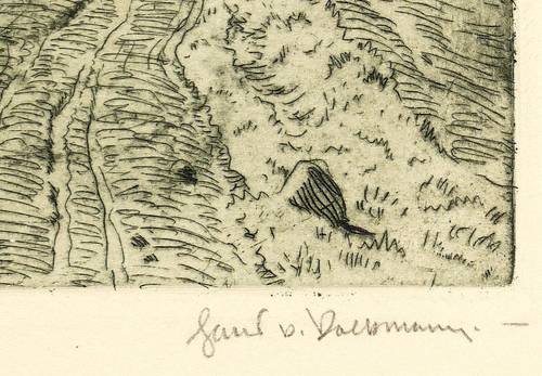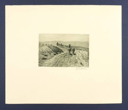1908. Radierung / Strichätzung & Kaltnadel, mit Plattenton, in Blauschwarz, auf Kupferdruckkarton. – Originale Künstlergrafik, von Hans Richard von Volkmann. – 9,3 x 14,2 cm (Darstellung), 9,9 x 14,9 cm (Platte), 28 x 33 cm (Blatt).