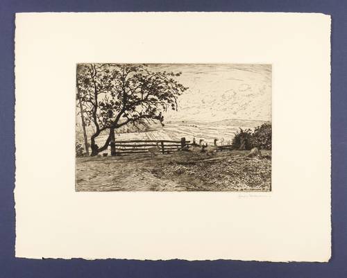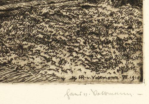 1910. Radierung / Strichätzung & Kaltnadel, mit Plattenton, in Schwarz, auf Kupferdruckbütten. – Originale Künstlergrafik, von Hans Richard von Volkmann. – 19,3 x 29,3 cm (Darstellung), 19,7 x 29,9 cm (Platte), 37 x 48 cm (Blatt).