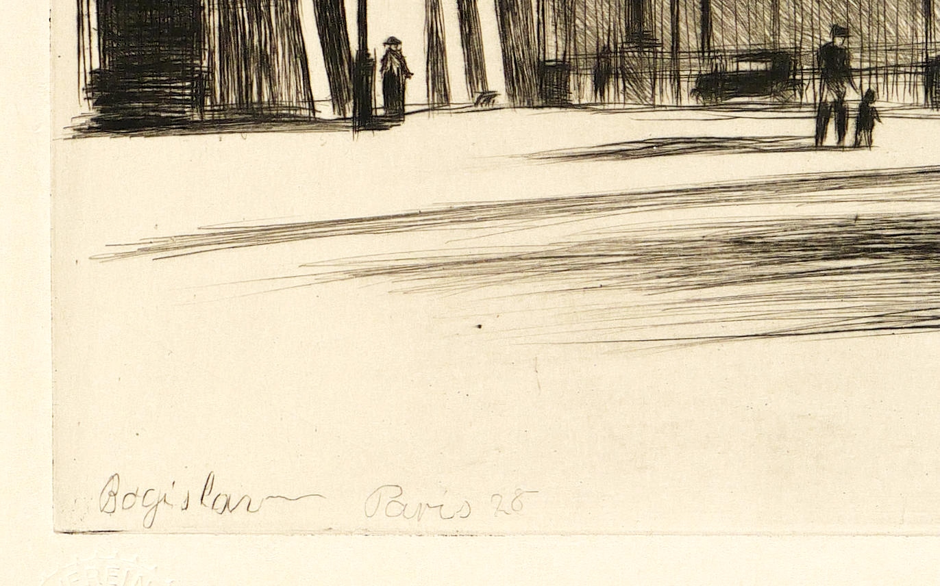 Aus: 30. Jahresmappe des Vereins für Original-Radierung Karlsruhe (Karlsruhe: Kunstdruckerei Künstlerbund 1928), Bd. 30. – In der Platte links unten signiert, betitelt und datiert: ″Bogislav Paris 28″. Trockenstempel des Vereins für Original-Radierung Karlsruhe. – Sehr gut erhalten.
