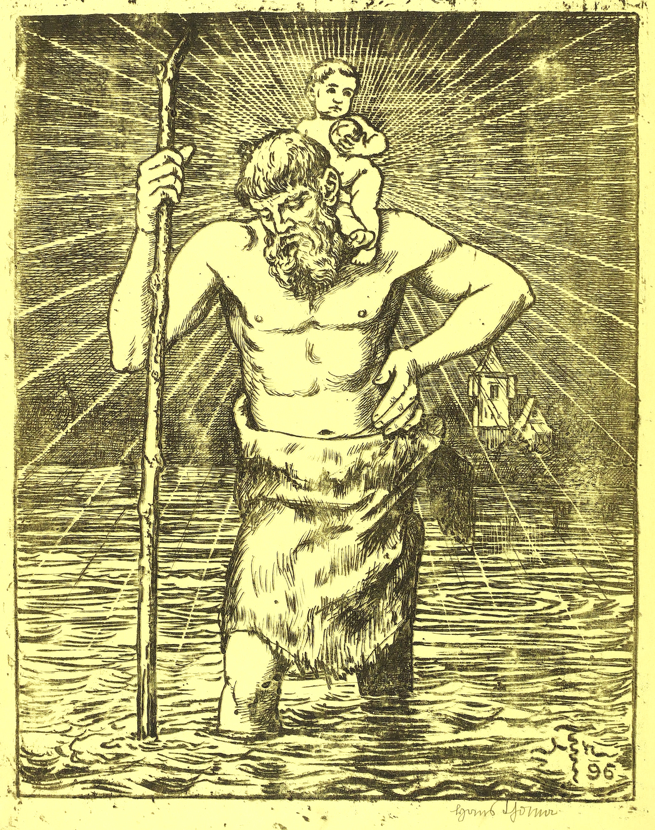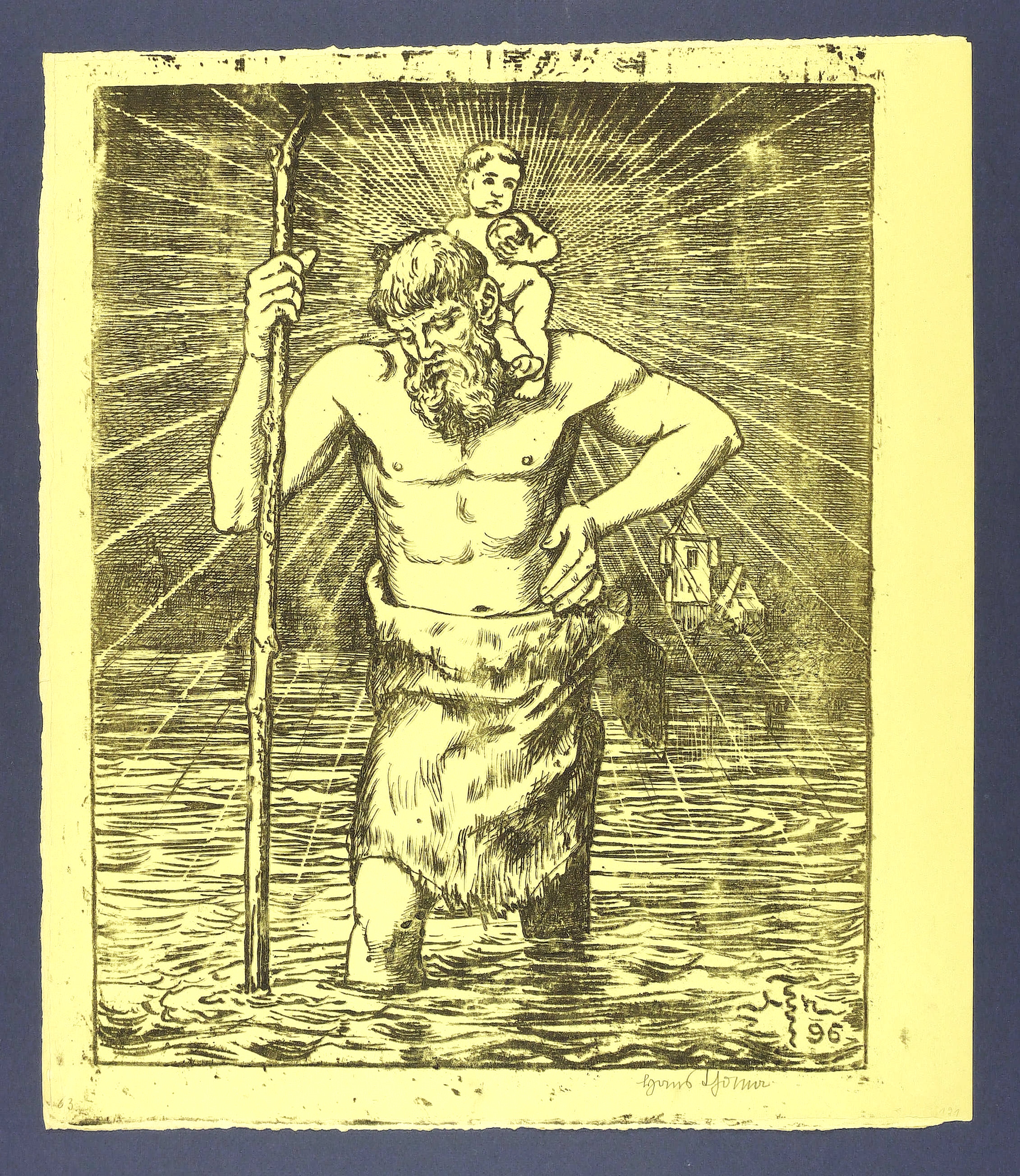 Beringer Griffelkunst 63. – Rechts unten in Bleistift signiert. In der Platte rechts unten zusätzlich Monogramm und Jahr. – Thoma experimentierte ausgiebig mit neuen künstlerischen Techniken, insbesondere in der Druckgrafik, wo er als Pionier die Algrafie und die Tachografie entwickelte. So entstanden schon 1892 die Tachografien ″Die Mutter des Künstlers″ und ″Narziß″. Tachografien hat Thoma in wenigen Handdrucken von maximal 10 Exemplaren hergestellt. Oft wurden sie von ihm übermalt. - Sehr selten. – Originalrandiges Exemplar mit zahlreichen Druckspuren im Rand. Papier in den Ecken und im linken Rand bestoßen. Mäßig guter Zustand.