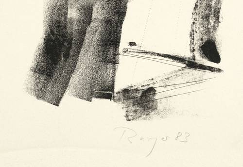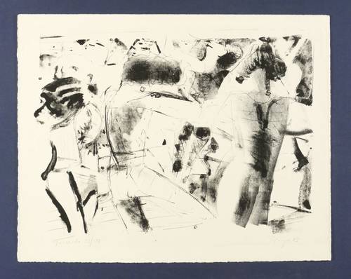 1983. Lithografie / Kreide- & Pinsellithografie, in Schwarz, auf chamois Hahnemühle. – Originale Künstlergrafik, von Dietrich Burger. – Auflage Exemplar Nr. 53/155. – 33,5 x 44,5 cm (Darstellung), 40 x 50 cm (Blatt).