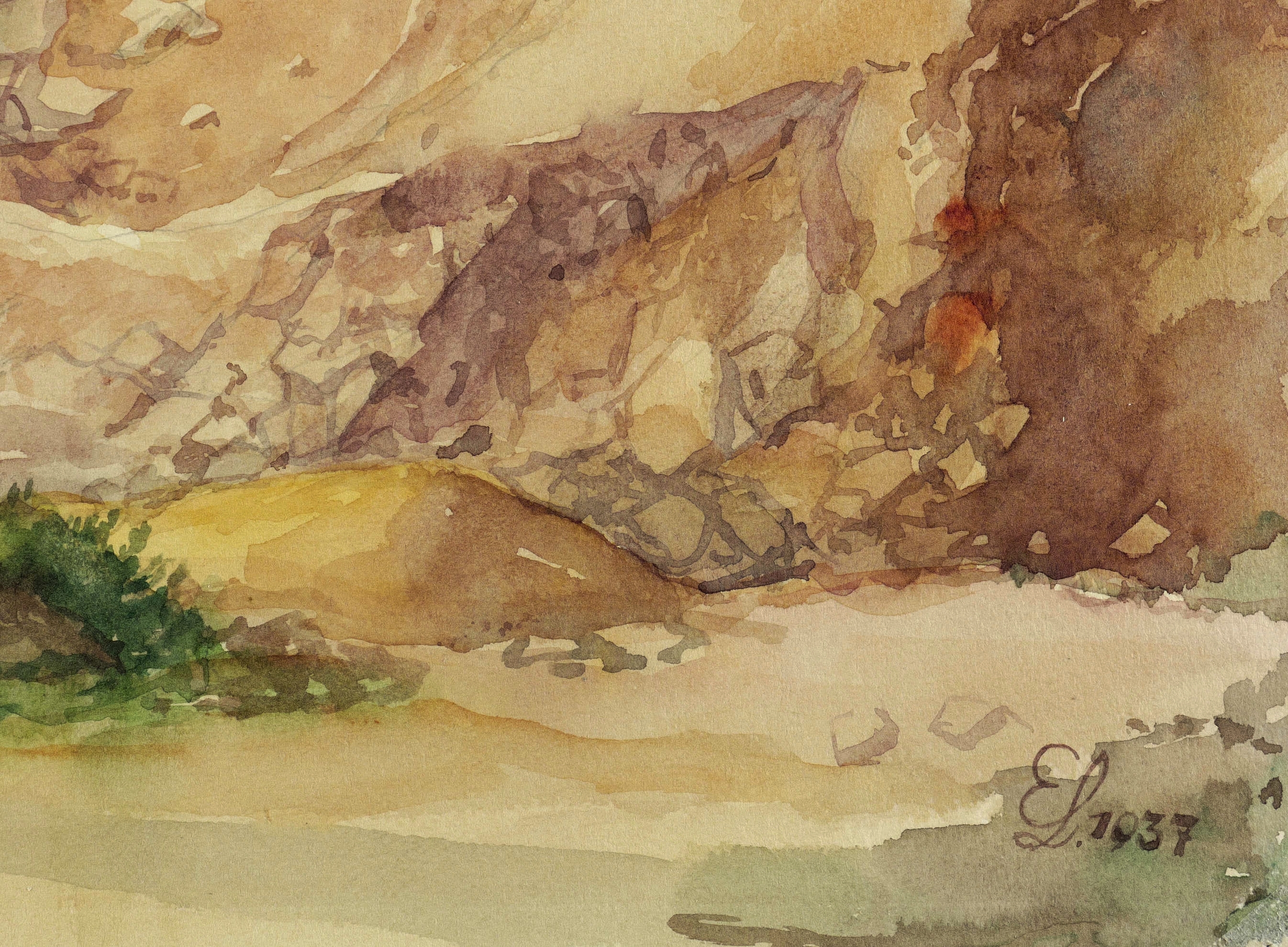 Rechts unten in Pinsel signiert und datiert: ″EL. 1937″. – In den Ecken originale Reißzwecklöchlein. Schönes Kolorit. Insgesamt sehr guter Erhaltungszustand.