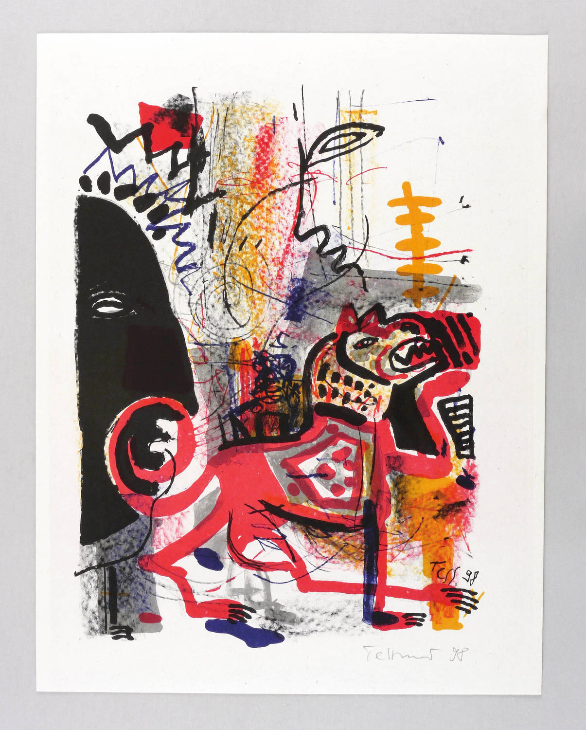 1998. Farblithografie / Pinsel- & Kreidelithografie, in 4 Farben, auf festem hellchamois Velinkarton. – Originale Künstlergrafik, von Heinrich Tessmer. – Auflage 300 Exemplare. – 37,6 x 27,4 cm (Darstellung / Druckbild), 45 x 35 cm (Blatt).
