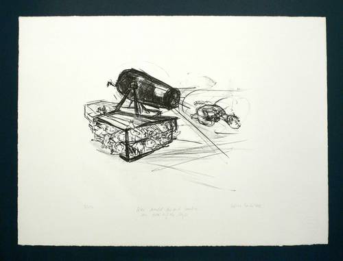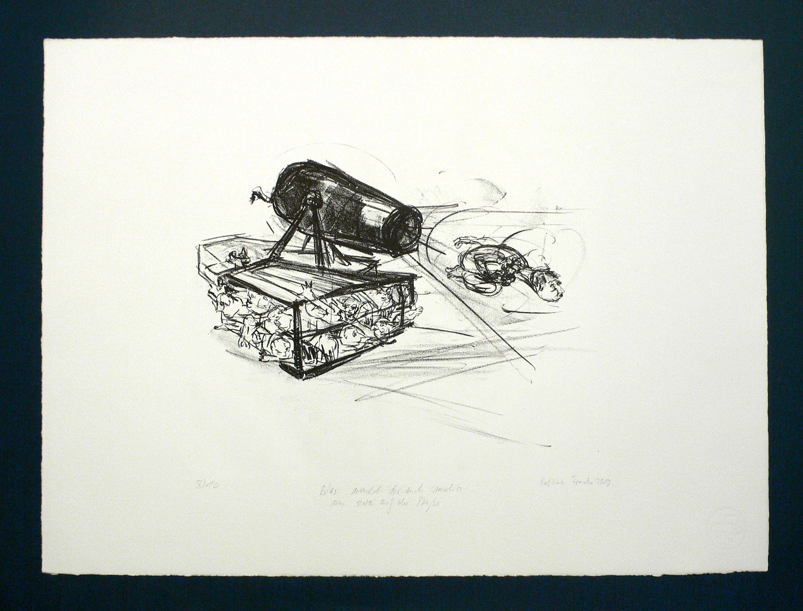2000. Lithografie / Kreidelithografie, auf Hahnemühle-Bütten. – Von Bettina Francke. – Auflage Exemplar Nr. 3/10. – 25,0 x 30,0 cm (Darstellung / Stein), 39,5 x 53 cm (Blatt).
