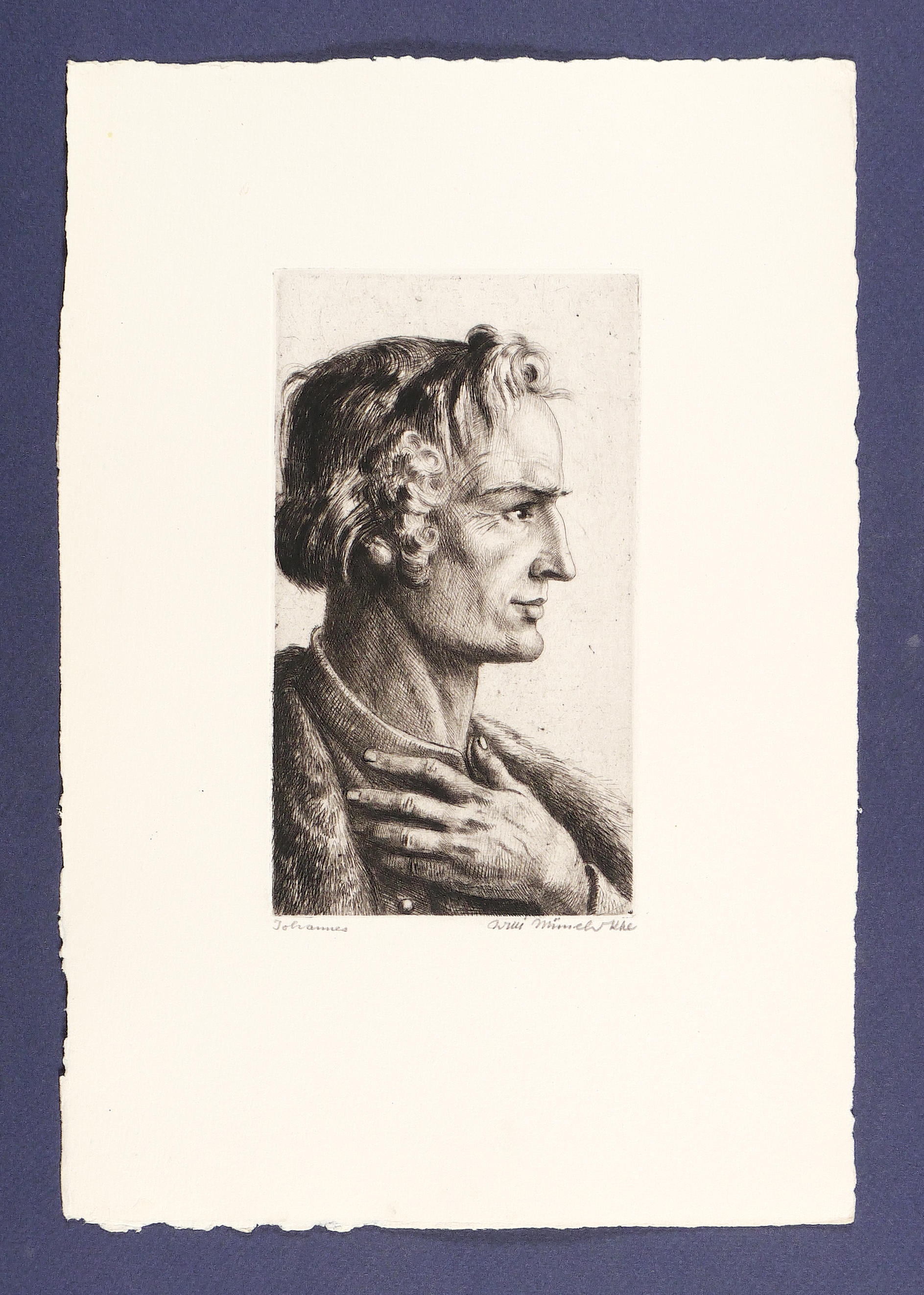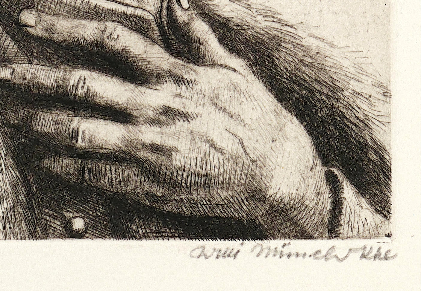 1920-1925. Radierung / Strichätzung & Kaltnadel, auf hellem Büttenkarton. – Originale Künstlergrafik, von Willi Münch-Khe. – 16,9 x 9,5 cm (Darstellung / Platte), 31 x 21 cm (Blatt).
