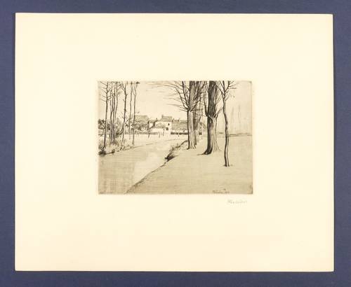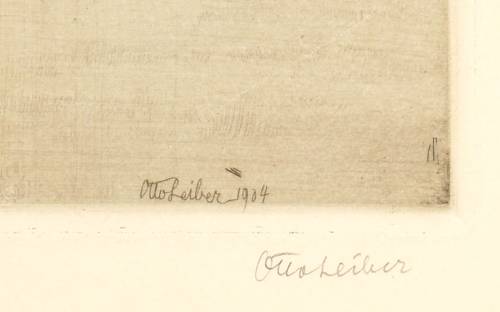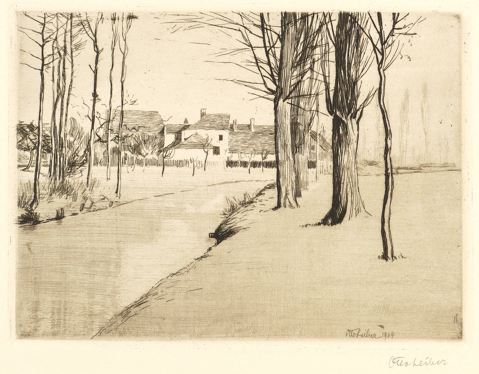 1904. Radierung / Kaltnadel, mit Plattenton, in Schwarz, auf Kupferdruckkarton. – Originale Künstlergrafik, von Otto Leiber. – 14,2 x 19,2 cm (Darstellung), 14,9 x 19,9 cm (Platte), 32 x 40 cm (Blatt).