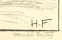 Heinrich Freytag (1876 Duisburg - 1951 Loschwitz / Dresden). Eigentlich Heinrich Carl Freytag. Deutscher Maler und Grafiker. 1899-1908 Studium an der Kunstakademie in Karlsruhe bei Schmid-Reutte, Weishaupt und Trübner. Ab 1910 in Otterndorf ansässig und später in Dresden-Loschwitz.