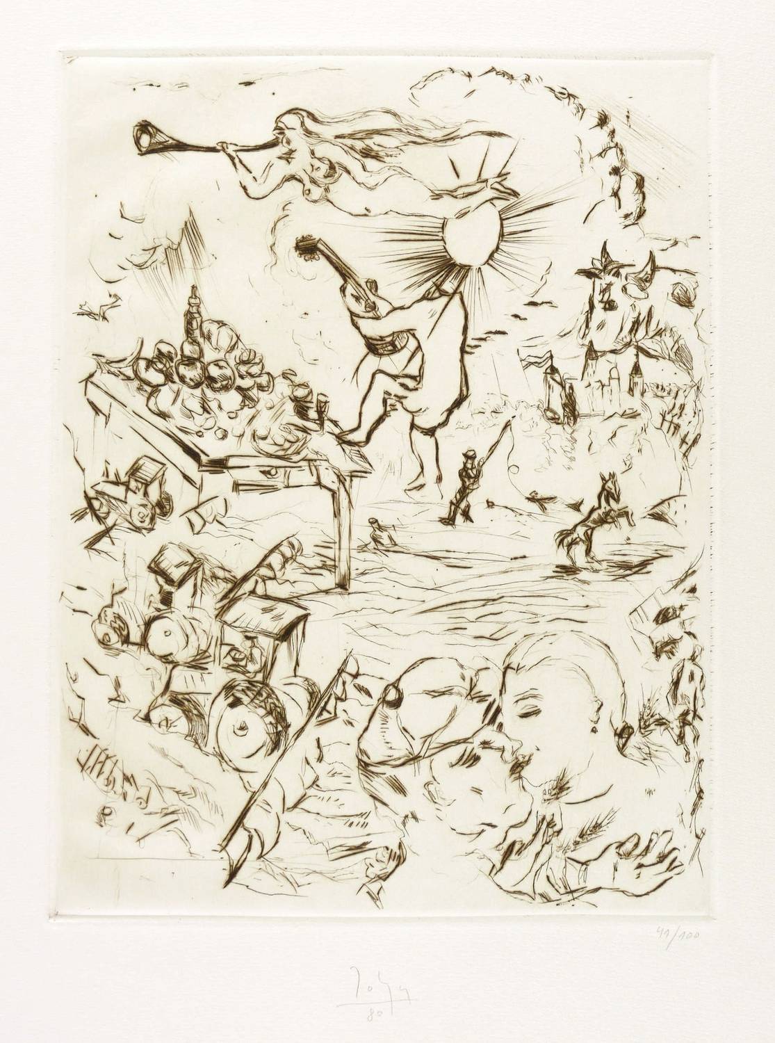 1980. Radierung / Kaltnadel, in Schwarz, auf hellchamois Hahnemühle-Bütten. – Originale Künstlergrafik, von Joachim John. – Auflage Exemplar Nr. 41/100. – 33,7 x 25,9 cm (Darstellung / Platte), 59 x 42 cm (Blatt).