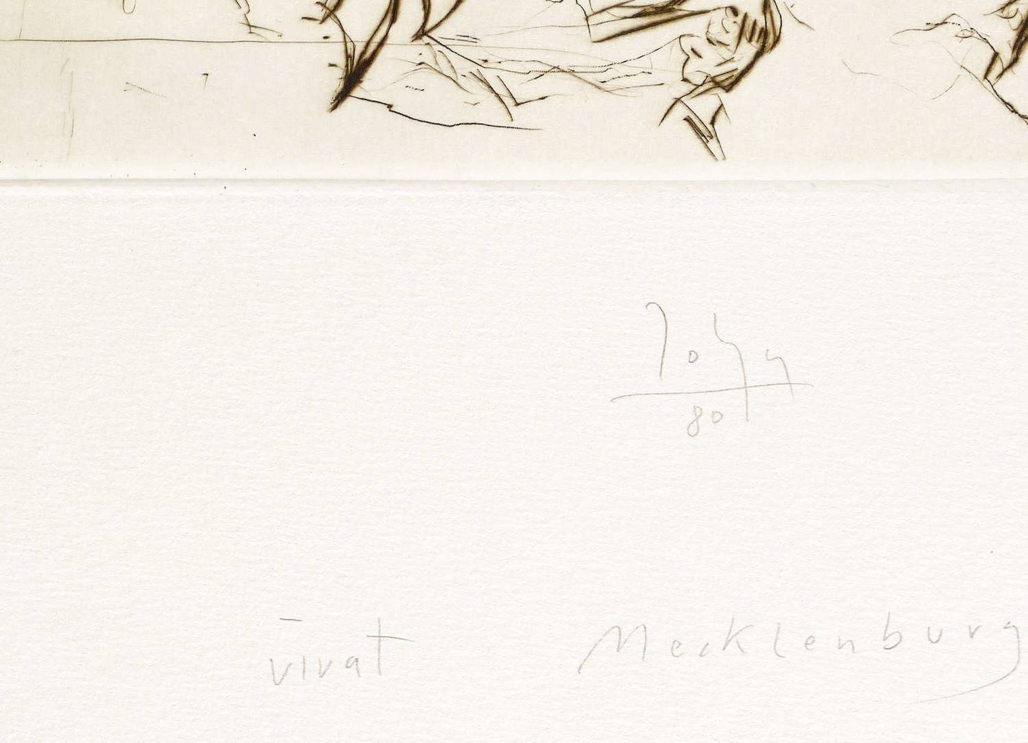 Unterhalb mittig in Bleistift signiert und datiert: ″John 80″. Rechts Auflagenbezeichnung: ″41/100″. Etwas unterhalb Titel: ″vivat Mecklenburg″. – Unbeschnittenes originalrandiges Exemplar. Sehr guter Zustand.