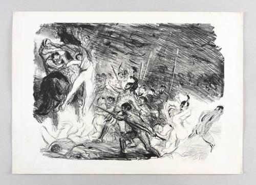1905/1906. Lithografie / Kreide- & Pinsellithografie, in Schwarz, auf hellgelbem Velinkarton. – Originale Künstlergrafik, von Max Slevogt. – 27,0 x 37,3 cm (Darstellung / Druckbild), 32 x 45 cm (Blatt).