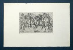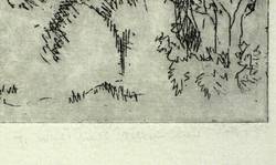1985. Radierung / Strichätzung, mit Plattenton, in Schwarz, auf hellchamois Velin. – Originale Künstlergrafik, von Jutta Walther-Schönherr. – 11,9 x 19,3 cm (Darstellung / Platte), 25 x 38 cm (Blatt).