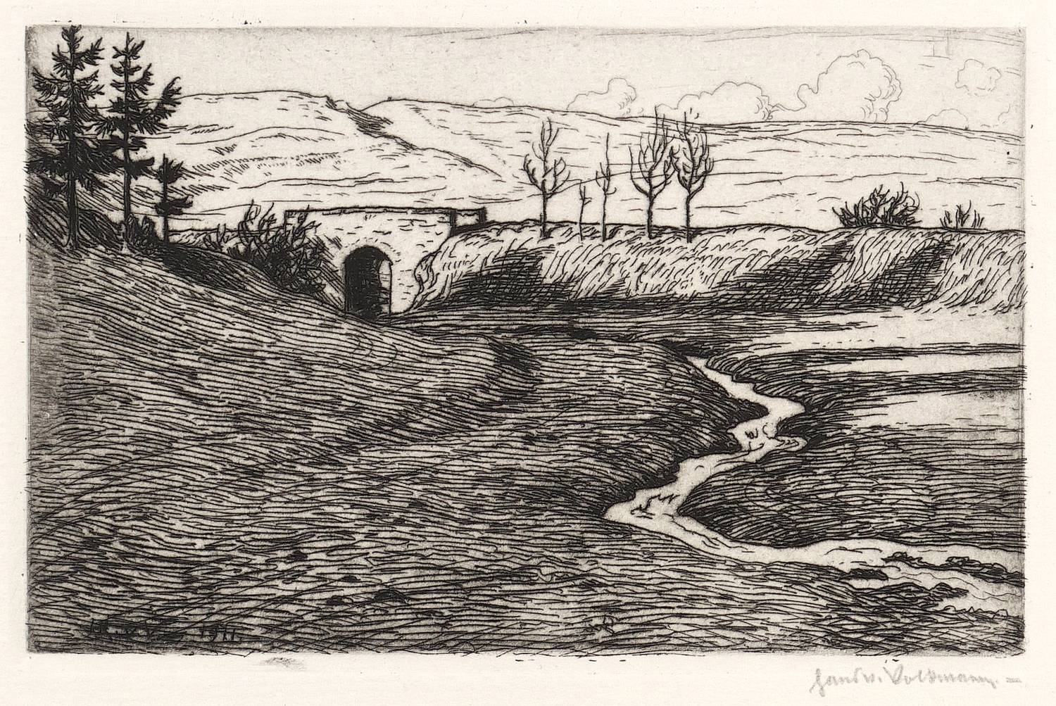 1911. Radierung / Strichätzung & Kaltnadel, mit Plattenton, inSchwarz, auf Büttenpapier. – Originale Künstlergrafik, von Hans Richard von Volkmann. – 8,4 x 13,3 cm (Darstellung / Platte), 18 x 25 cm (Blatt).