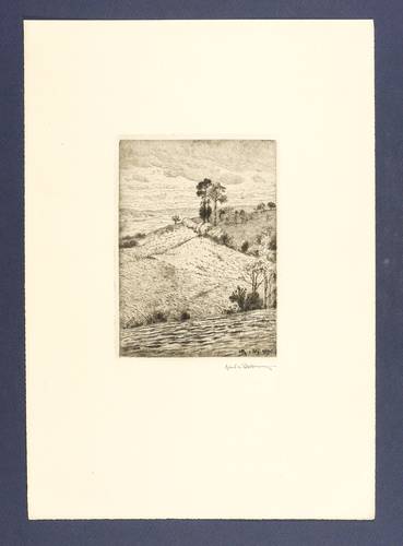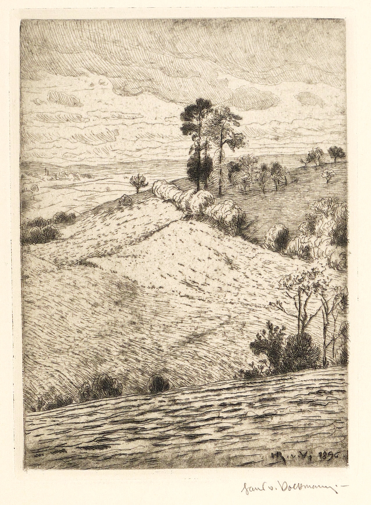1896. Radierung / Strichätzung & Kaltnadel, mit Plattenton, in Blauschwarz, auf Kupferdruckkarton. – Originale Künstlergrafik, von Hans Richard von Volkmann. – 14,1 x 10,3 cm (Darstellung), 14,8 x 10,9 cm (Platte), 33 x 23 cm (Blatt).