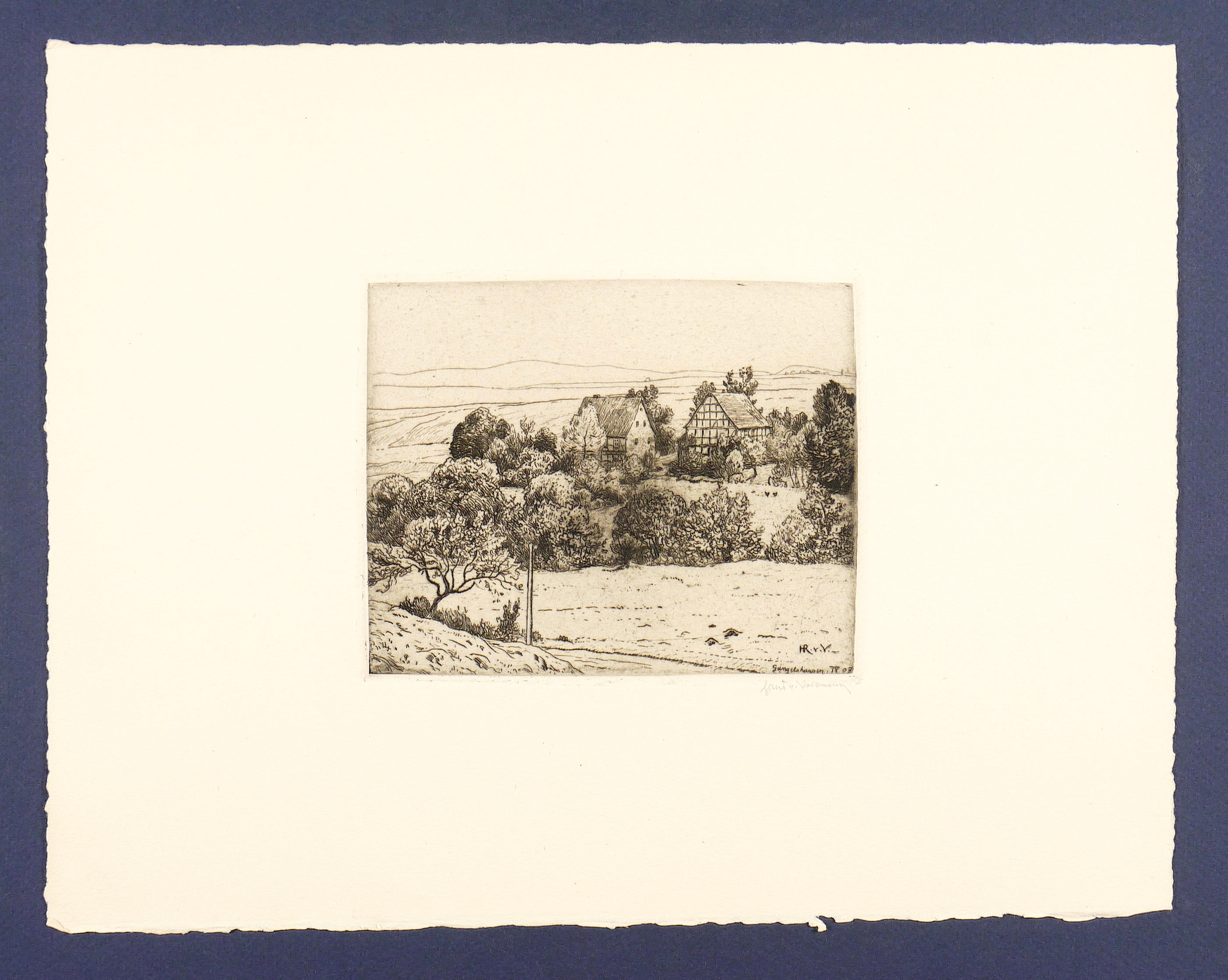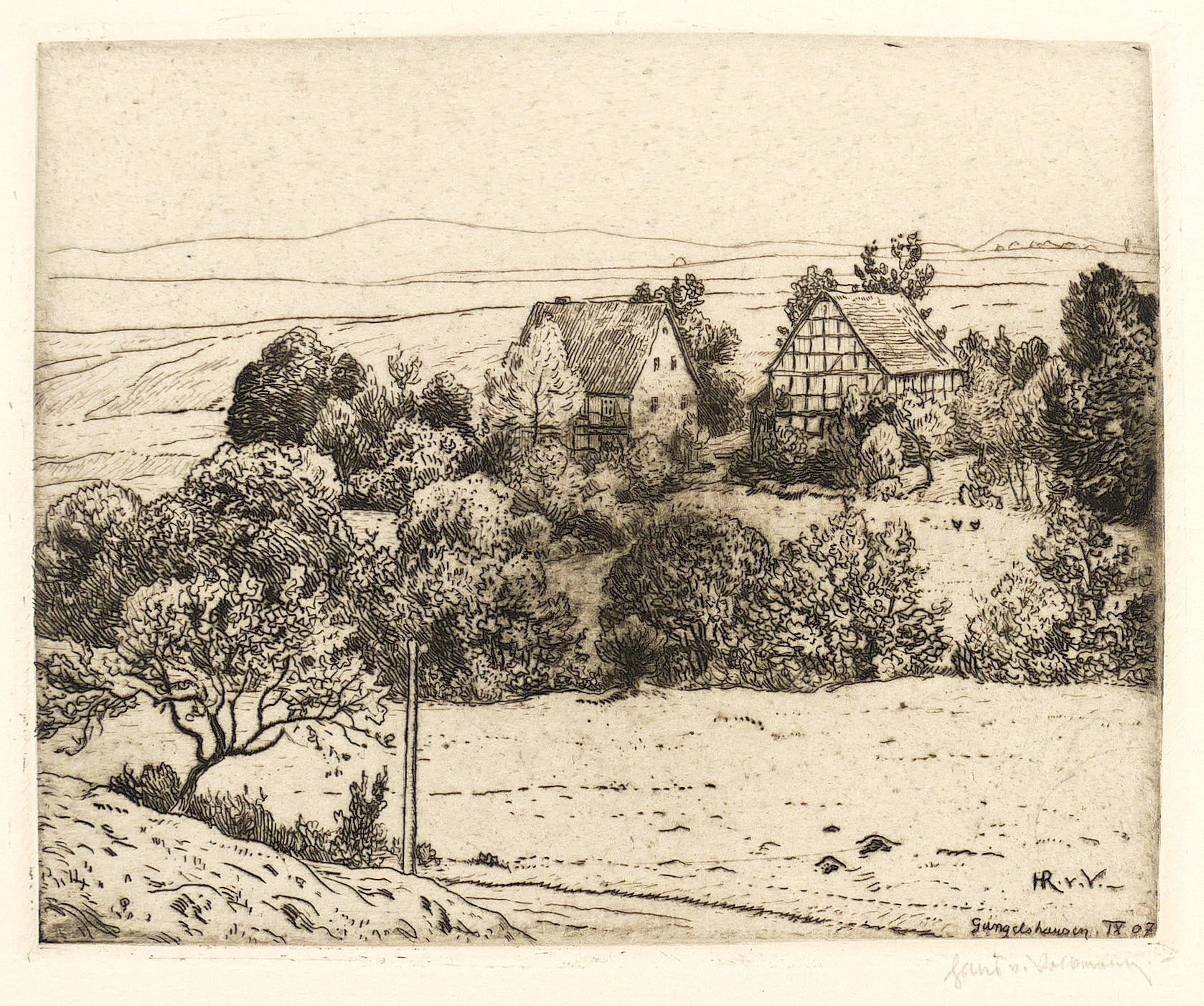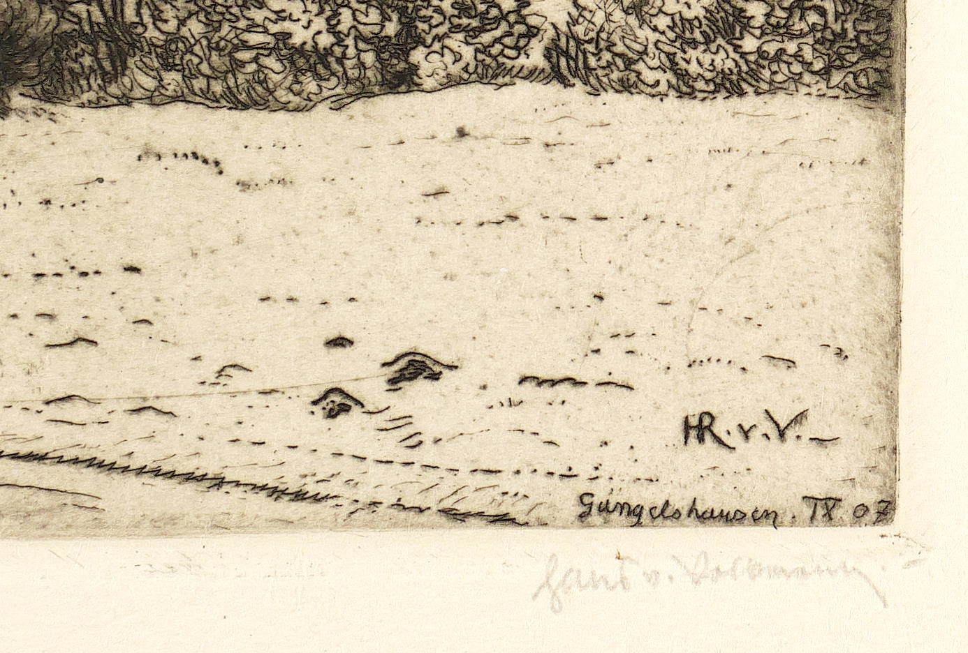 Rechts unten in Bleistift signiert. In der Platte links unten Monogramm, Titel und Datum: ″HR. v. V. / Gungelshausen. IX. 07″. Verso Stempel der Kunstdruckerei Künstlerbund Karlsruhe mit handschriftlicher Katalognummer ″124″. – Tadelloser Zustand.