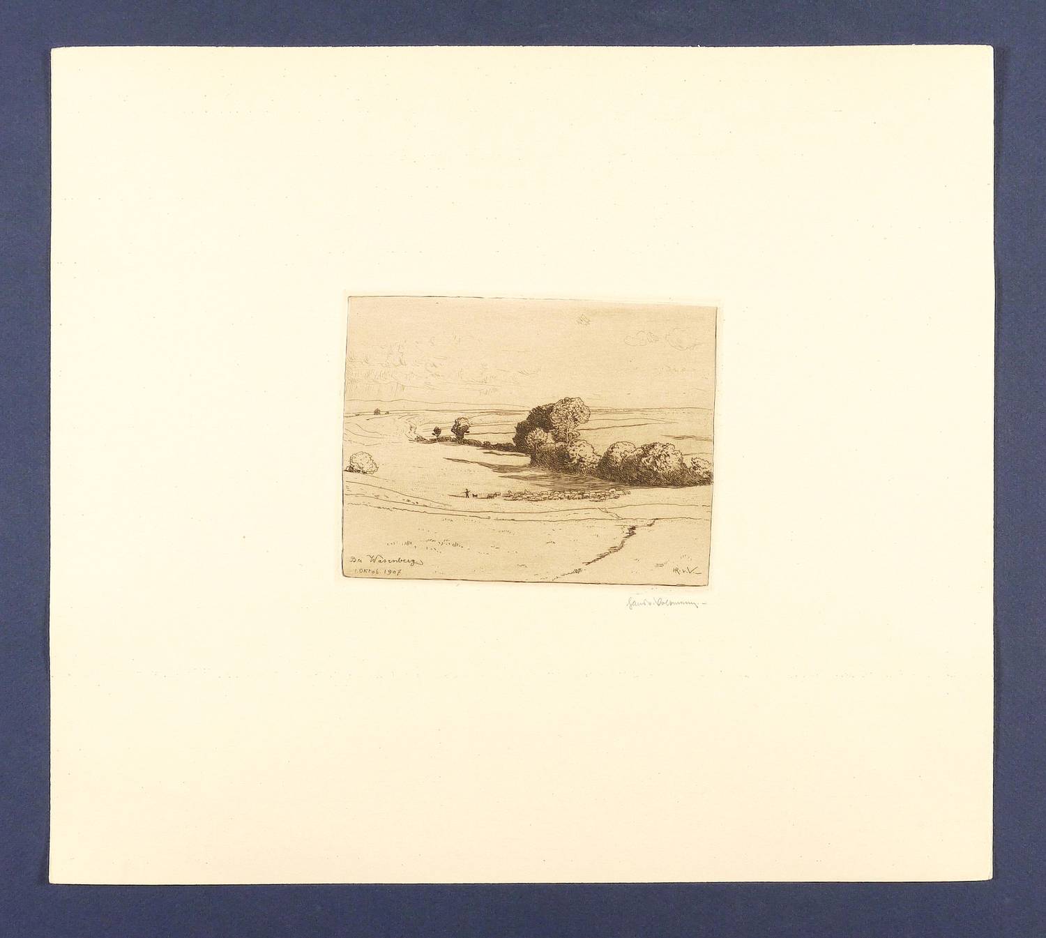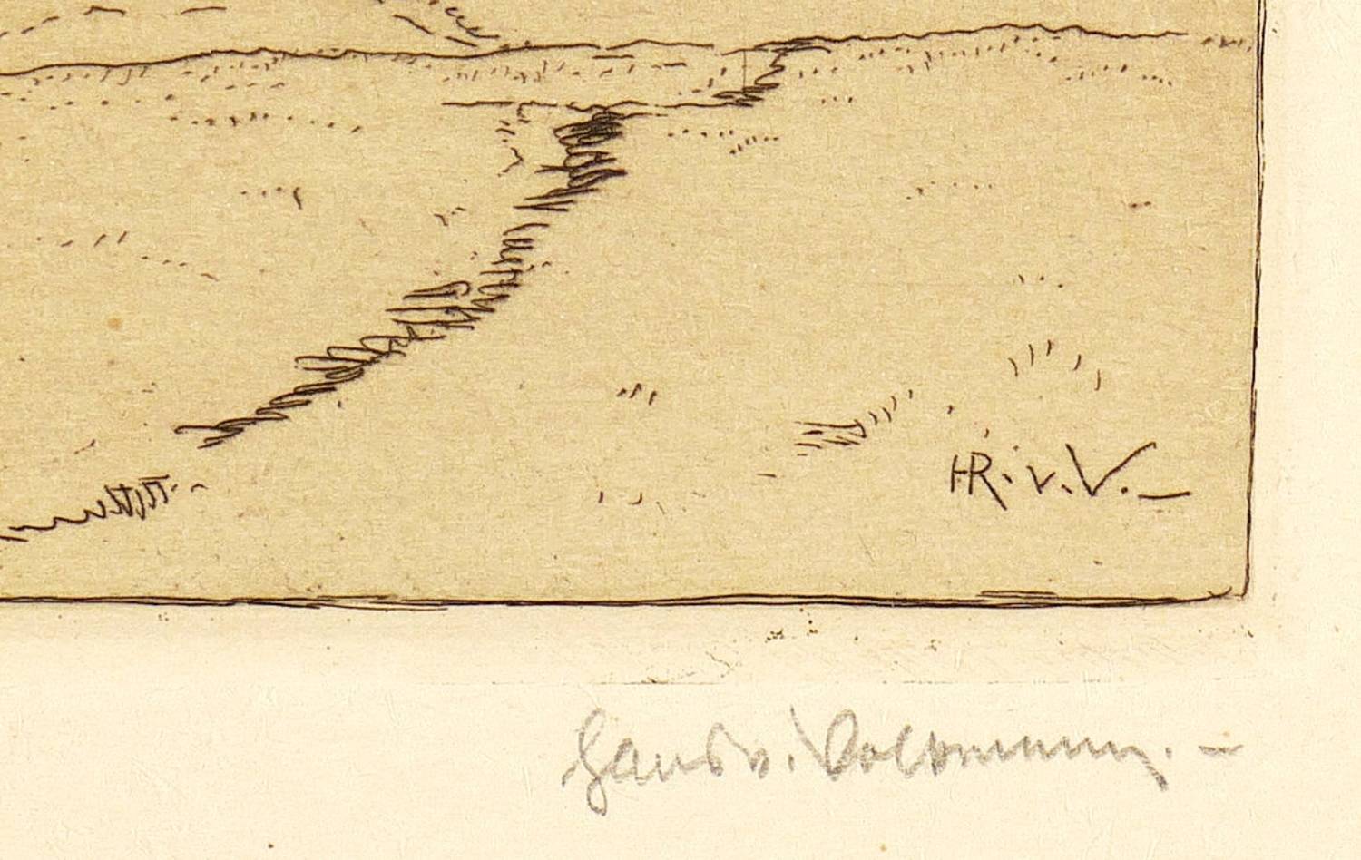 Rechts unten in Bleistift signiert. In der Platte links unten bezeichnet und datiert: ″Bei Wasenberg / 1. Oktob. 1907″. Rechts unten signiert: ″HR. v. V.″ Verso Stempel der Kunstdruckerei Künstlerbund Karlsruhe mit handschriftlicher Katalognummer ″128″. – Papier minimal gegilbt. Sonst tadelloser Zustand.