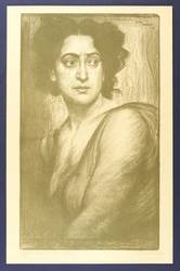 Links unten in Bleistift signiert: ″Karl Bauer. Som[m]er 1906 gez.″ Rechts eigenhändiger Titel. Im Stein rechts oben ebenfalls Signatur und Jahr: ″KARL BAUER 06.″ – Zeigt die Schauspielerin in der Rolle der Judith aus dem Drama ″Totentanz″ (1900) von August Strindberg. – Unscheinbare Knickspuren im Rand. Sonst sehr gut erhalten.