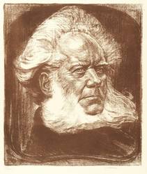 Rechts unten in Bleistift signiert: ″Karl Bauer gez.″ Links eigenhändiger Titel: ″Ibsen″. Im Stein rechts oben Signatur: ″BAUER″. – Sehr gut erhalten.