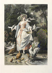 In der Platte rechts unten gestochene Signatur: ″A. Schultheiss sculps″. Links bezeichnet: ″W. v. Kaulbach del.″ Zentrals unterhalb der Darstellung Titel und Verlegeradresse: ″LILI / VERLAG VON FRIEDRICH BRUCKMANN IN MÜNCHEN. / H. Felsing impr.″ – Illustration zum Gedicht ″Lilis Park″ von Johann Wolfgang von Goethe: ″Lilis Park // Ist doch keine Menagerie / So bunt als meiner Lili ihre! / Sie hat darin die wunderbarsten Tiere / Und kriegt sie ’rein, weiß selbst nicht wie. / O wie sie hüpfen, laufen, trappeln, / Mit abgestumpften Flügeln zappeln, / Die armen Prinzen allzumal, / In nie gelöschter Liebesqual! // ″Wie hieß die Fee? Lili?″ – Fragt nicht nach ihr! / Kennt ihr sie nicht, so danket Gott dafür. // (...)″. – Dem Alter entsprechend guter Erhaltungszustand.