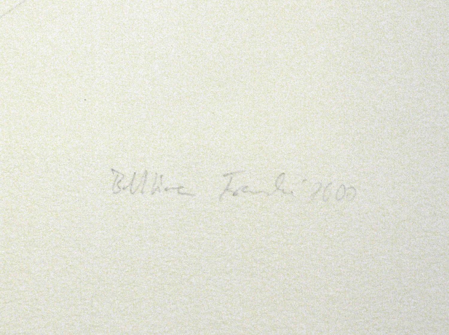 2000. Lithografie / Kreidelithografie, auf Hahnemühle-Bütten. – Von Bettina Francke. – Auflage Exemplar Nr. 2/11. – 40,5 x 30,5 cm (Darstellung / Stein), 53 x 40 cm (Blatt).