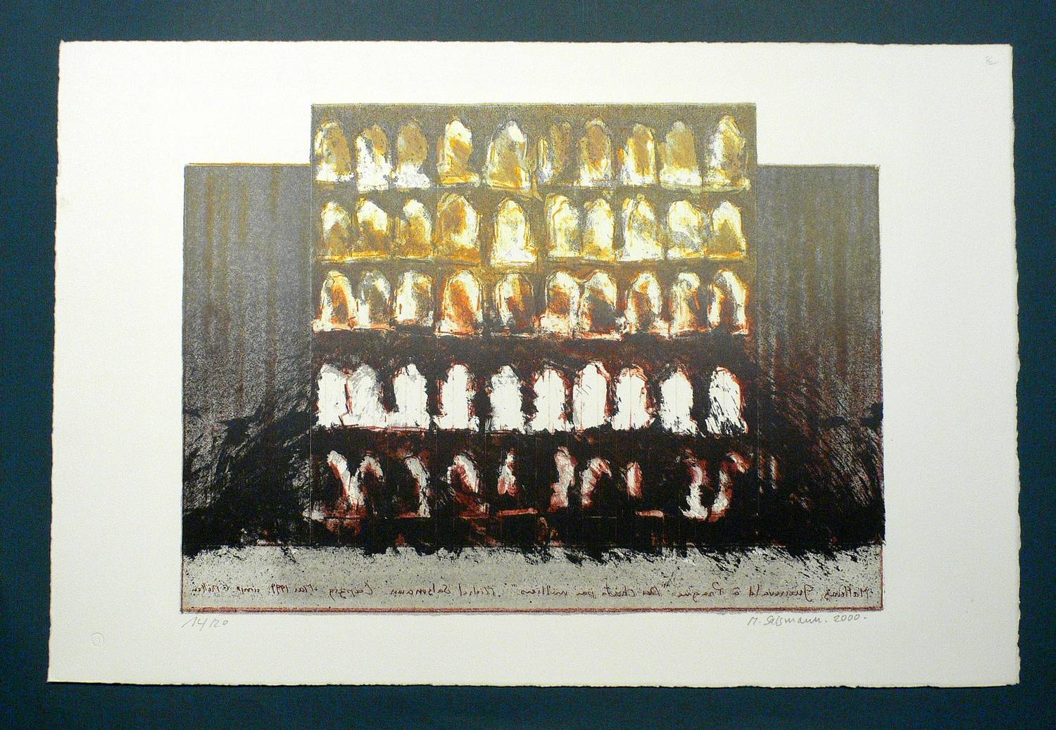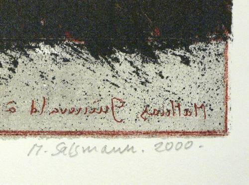 2000. Lithografie / Farblithografie. – Von Michel Salsmann. – Auflage Exemplar Nr. 14/20. – 32,0 x 44,2 cm (Darstellung / Stein), 41 x 61 cm (Blatt).