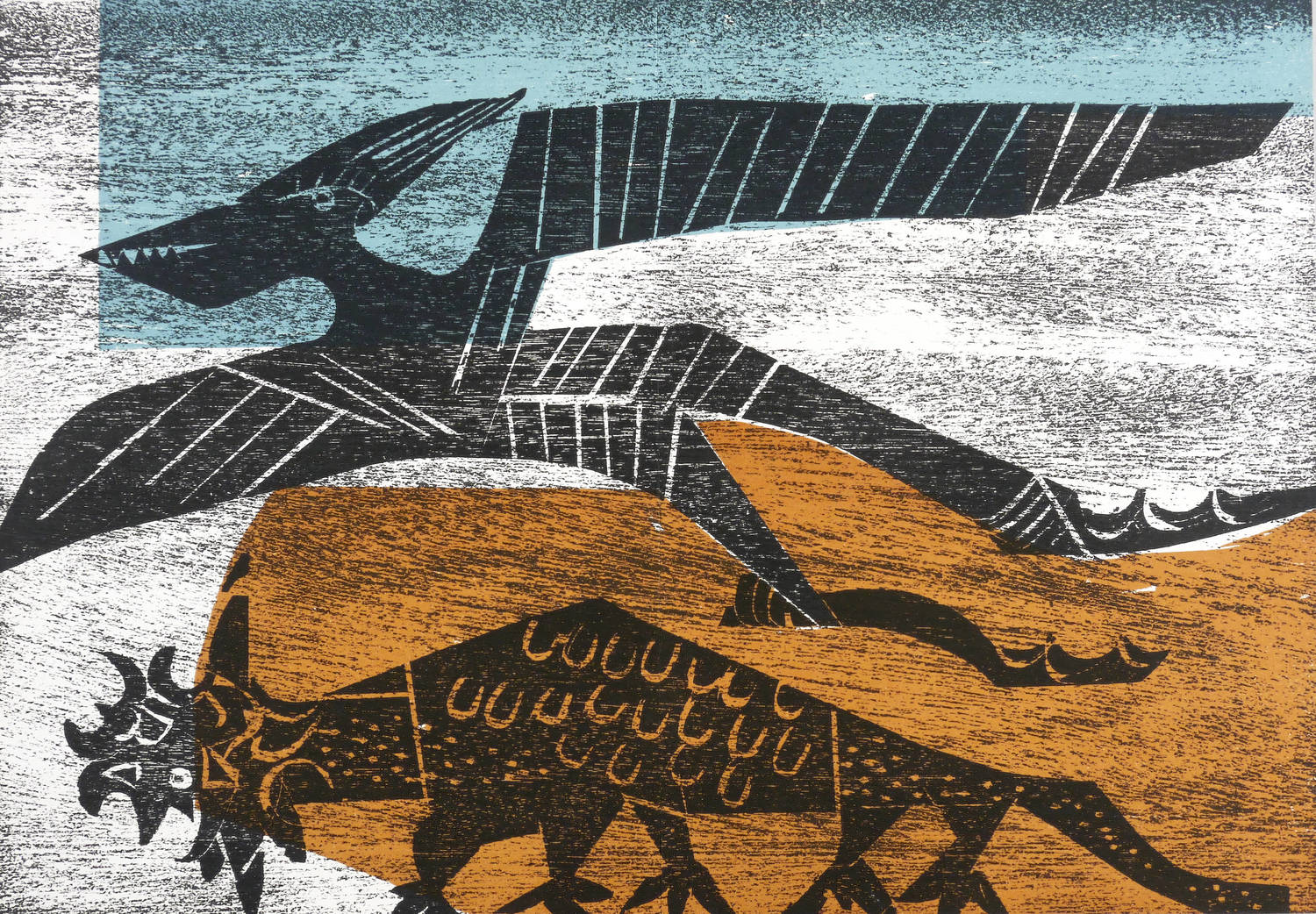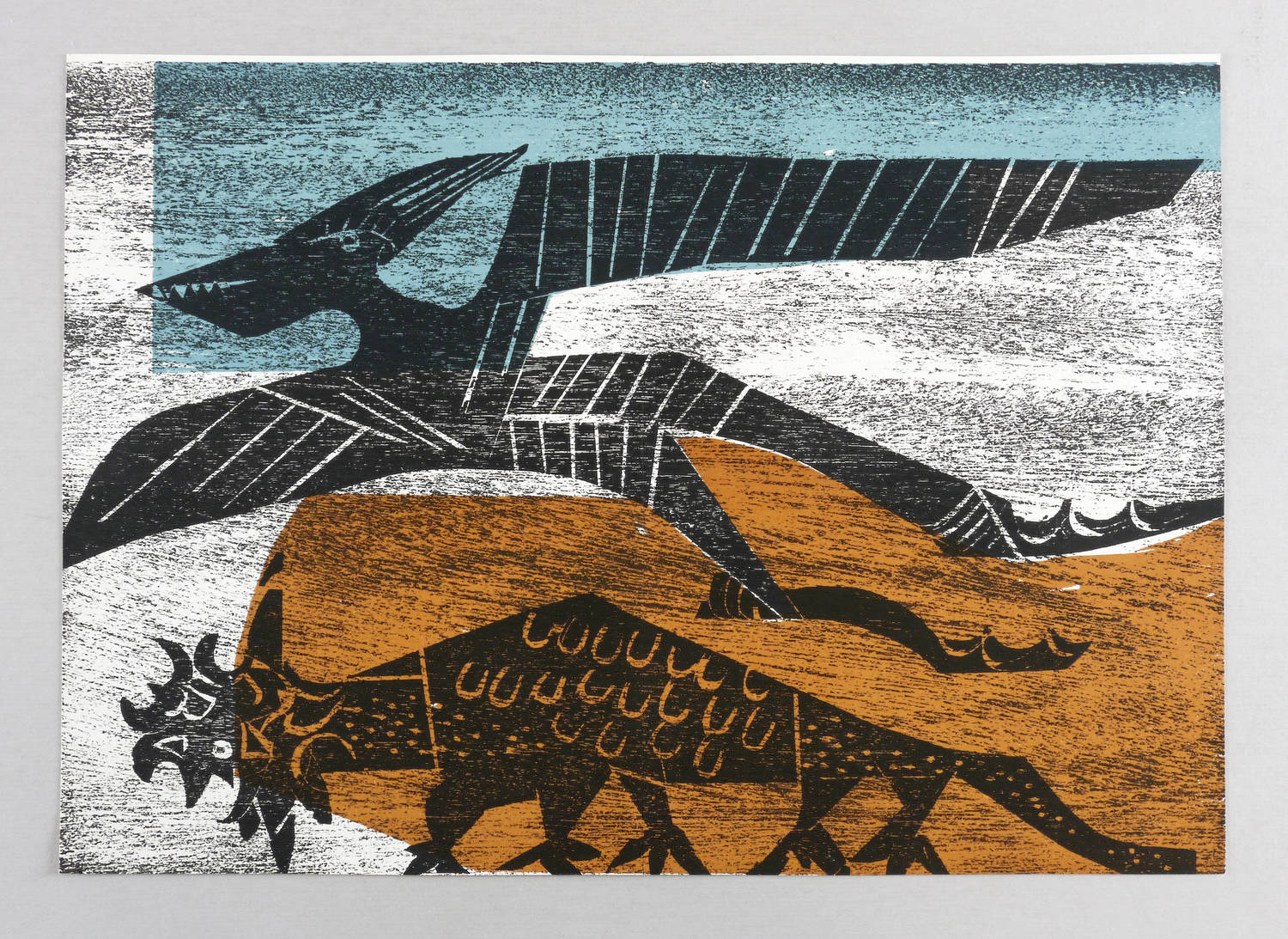 1972. Farbholzschnitt, in Blau, Ocker & Schwarz, auf weißem Werkdruck. – Originale Künstlergrafik, von HAP Grieshaber. – Auflage 20000 Exemplare. – 29,5 x 44,5 cm (Darstellung / Blatt).