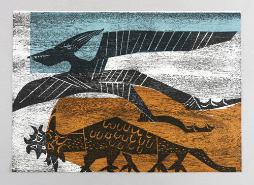 Fürst 72/57 c (von c). – Nicht signiert. – Randlos gedruckte Doppelseite mit Originalgrafik aus ″Aufenthalt auf Erden″ von Pablo Neruda (Frankfurt am Main: Büchergilde Gutenberg 1972). – Rückseite mit zwei weiteren Farbholzschnitten ″Triasbaum″ und ″Schilf″. – Originale vertikale Bindefalte. Guter Zustand.