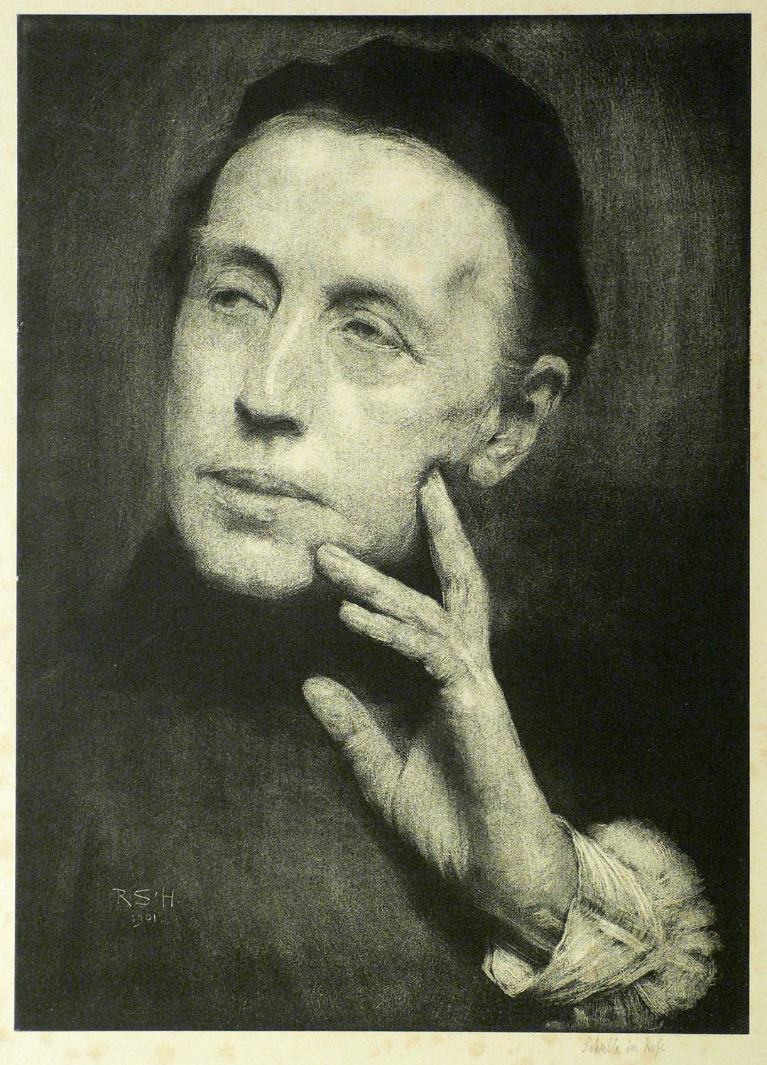 Rudolf Schulte im Hofe (1865 Ückendorf bei Gelsenkirchen - 1928 in Berlin). Deutscher Maler und Grafiker der Münchner Schule. Schüler von L. Schmid-Reutte, C. Hacke und L. v. Löfftz. Vor allem bekannt durch seine Porträts. Zeitweise war er Vorsitzender des Vereins Berliner Künstler und Professor der Akademie der Künste in Berlin. Außerdem gilt als Erfinder der Steinradierung. Bei diesem Verfahren wird die Zeichnung vor dem Ätzvorgang mit einer Nadel in den Stein geritzt.