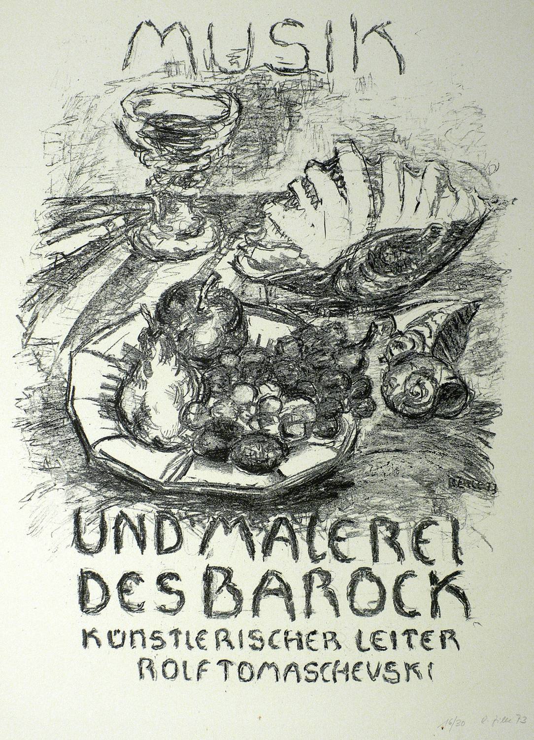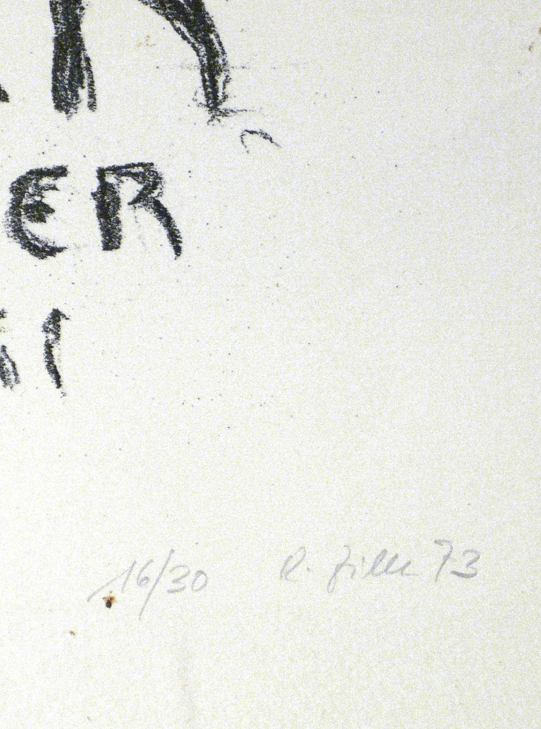 1973. Lithografie / Kreidelithografie, in Schwarz, auf gelblichem Velin. – Originales Künstlerplakat, von Rainer Zille. – Auflage Exemplar Nr. 16/30. – 57,0 x 41,0 cm (Darstellung / Stein), 70 x 50 cm (Blatt).