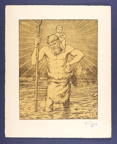 1896. Farblithografie / Feder- & Pinsellithografie, in Ocker & Dunkelbraun, auf gelblichem Karton. – Originale Künstlergrafik, von Hans Thoma. – 44,1 x 34,8 cm (Darstellung / Druckbild), 59 x 47 cm (Blatt).