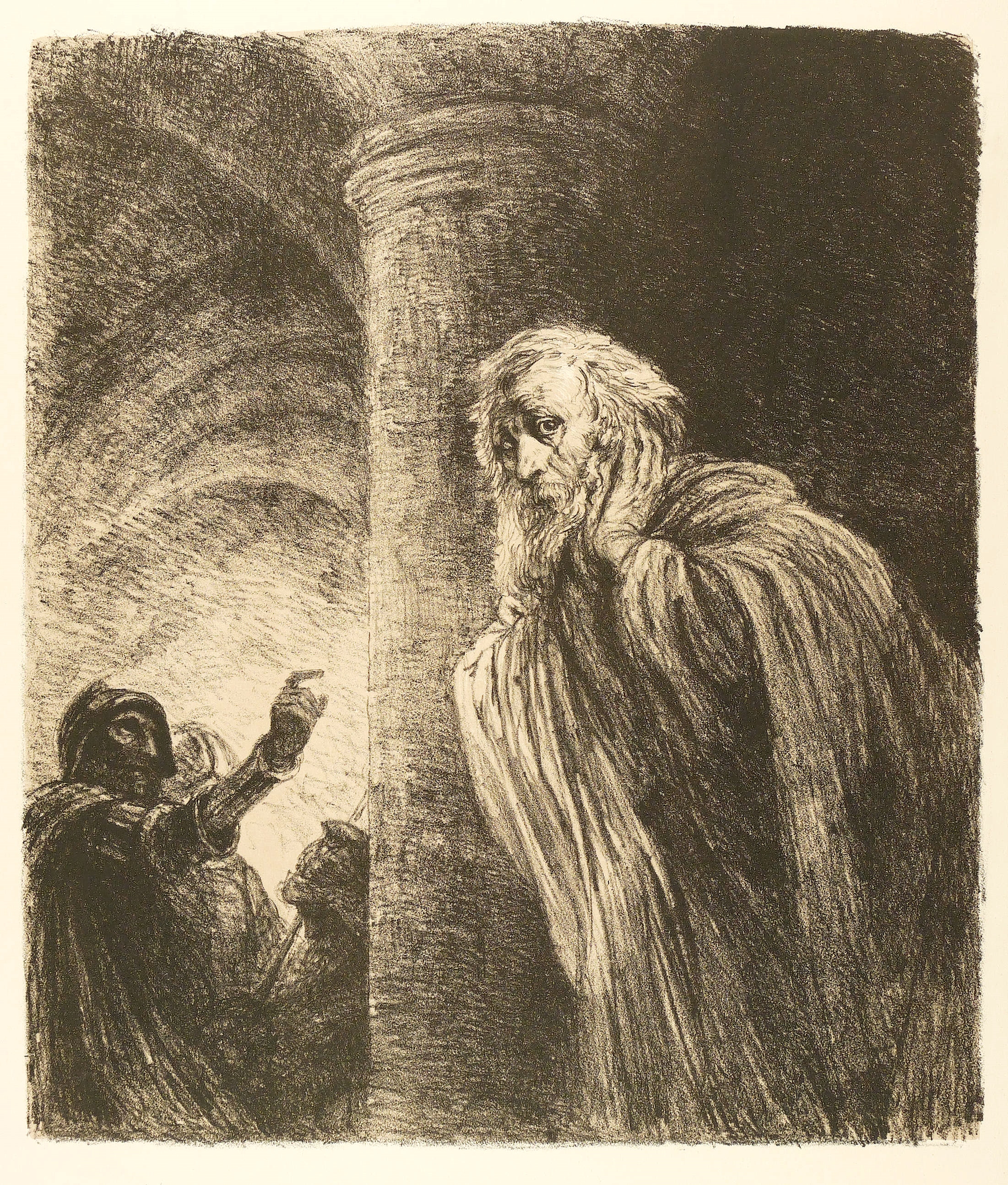 1890-1900. Lithografie / Tonlithografie, in Schwarz, über graugrüner Tonplatte, auf Karton. – Originale Künstlergrafik, von Wilhelm Steinhausen. – 53,0 x 45,2 cm (Darstellung / Druckbild), 60 x 50 cm (Blatt).
