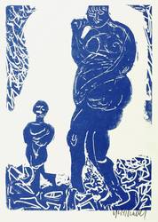 Fürst 68/29. – Links unten in Bleistift signiert: ″Grieshaber″. Deutscher Rückentext. – Dieser Holzstock fand 1968 noch für einen weiteren Holzschnitt unter demselben Titel in der Farbvariante Rot Verwendung sowie 1969 für einen zweifarbigen Druck. Hier die erste bekannte Farbvariante. - Rückseitig weiterer jedoch unsignierter Holzschnitt in Schwarz. – Sehr guter Zustand.