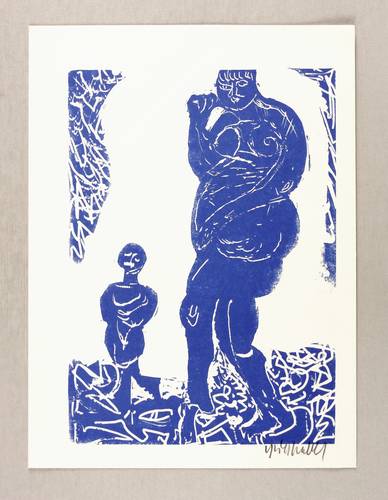 1968. Holzschnitt, in Dunkelblau, auf hellchamois Werkdruckpapier. – Originale Künstlergrafik, von HAP Grieshaber. – 22,9 x 16,5 cm (Darstellung / Druckbild), 28 x 20 cm (Blatt).