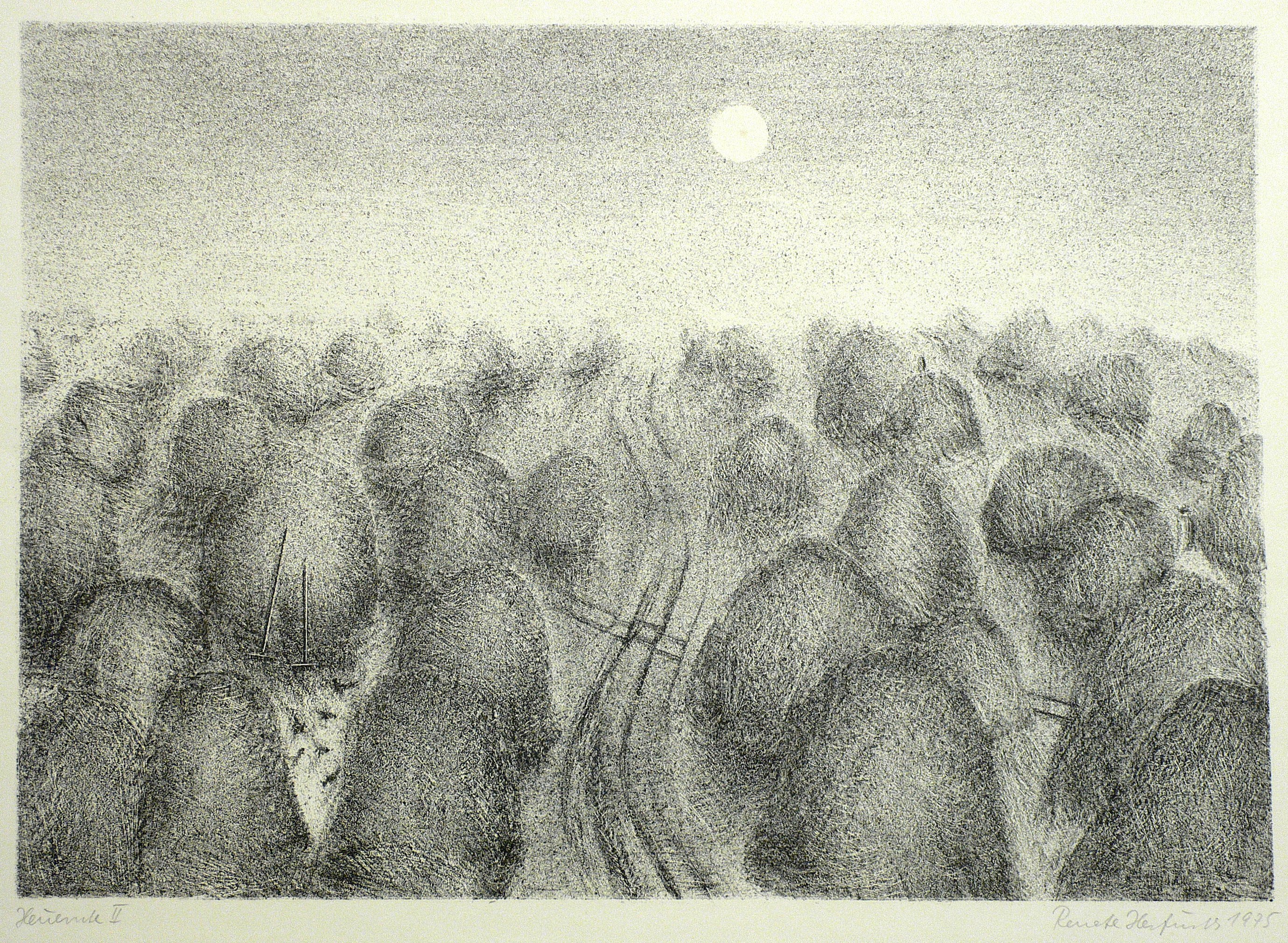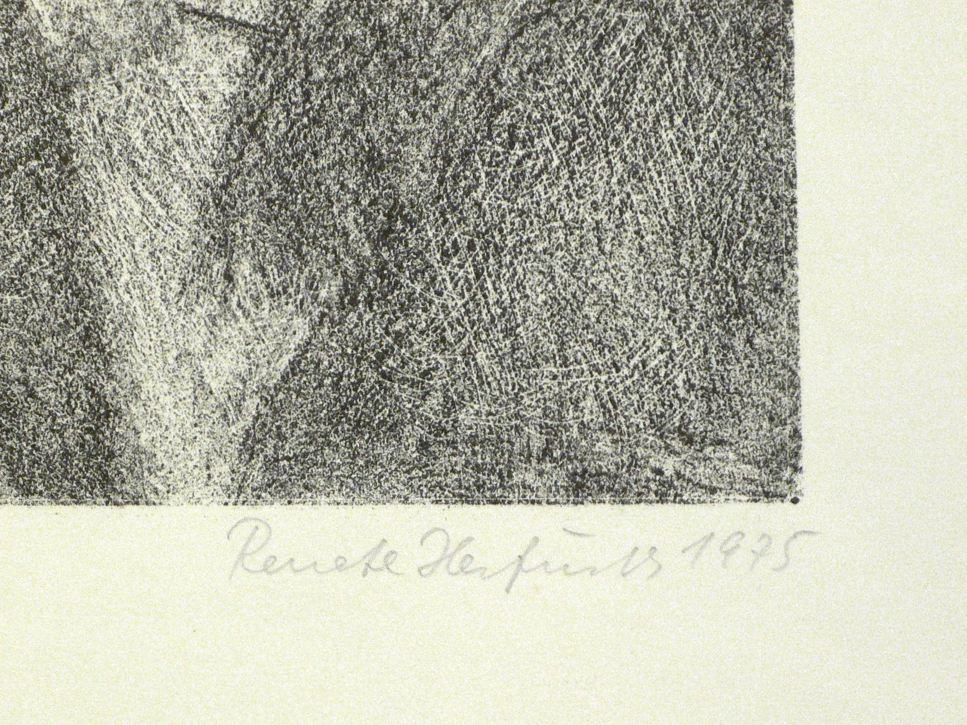 1975. Lithografie / Kreidelithografie, in Schwarz, auf hellgelbem Velin. – Originale Künstlergrafik, von Renate Herfurth. – 27,3 x 39,0 cm (Darstellung / Stein), 35 x 50 cm (Blatt).