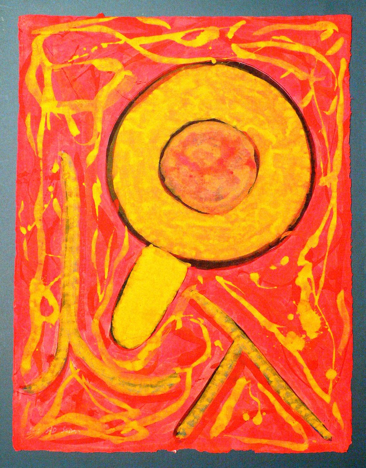 1985. Mischtechnik / Aquarell & Gouache, auf Velinkarton. – Originale Künstlergrafik, von Frieder Heinze. – Unikat. – 56 x 43 cm (Darstellung / Einfassungslinie).