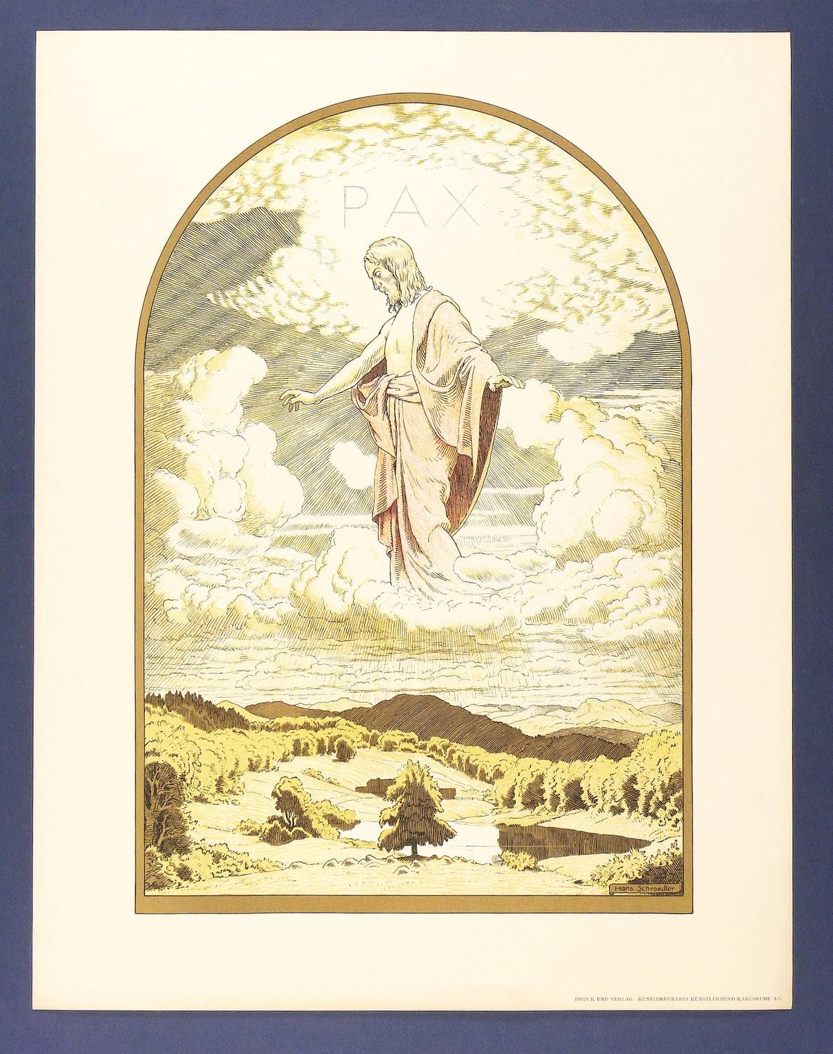 Im Stein rechts unten signiert: ″Hans Schroedter″. Rechts unten typografisch Druckeradresse der Kunstdruckerei Künstlerbund Karlsruhe (KKK). – Originalrandiges Exemplar. Minimale Lagerspuren. Insgesamt sehr guter Zustand.