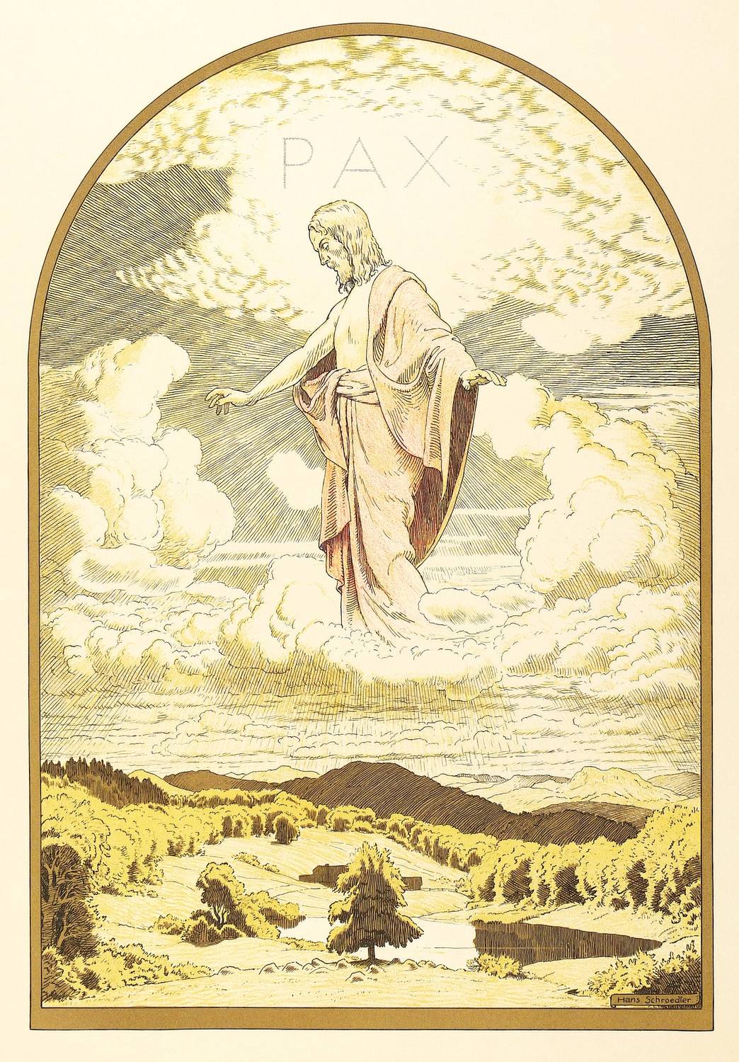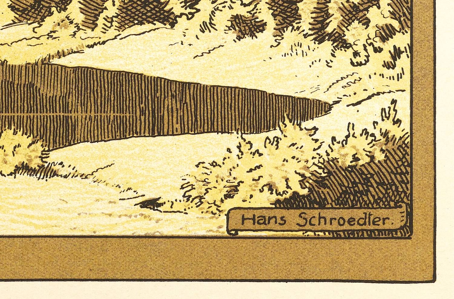 Hans Schroedter (1872 Karlsruhe - 1957 Hausen vor Wald bei Donaueschingen). Deutscher Maler und Grafiker. Studium bei Leopold von Kalckreuth und Hans Thoma an der Kunstakademie Karlsruhe. Um 1899 Studienreisen in die Schweiz, nach Paris und Italien. Als Maler und Grafiker vier Jahre in München tätig. Meisterstudium bei Hans Thoma in Karlsruhe. 1912 Hans-Thoma-Preis.