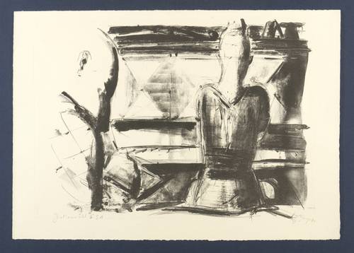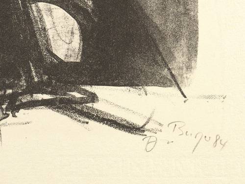 1984. Lithografie / Kreide- & Pinsellithografie, in Schwarz, auf gelbem Hahnemühle-Bütten. – Originale Künstlergrafik, von Dietrich Burger. – Künstlerexemplar (e.a.). – 35,2 x 46,0 cm (Darstellung), 40 x 56 cm (Blatt).