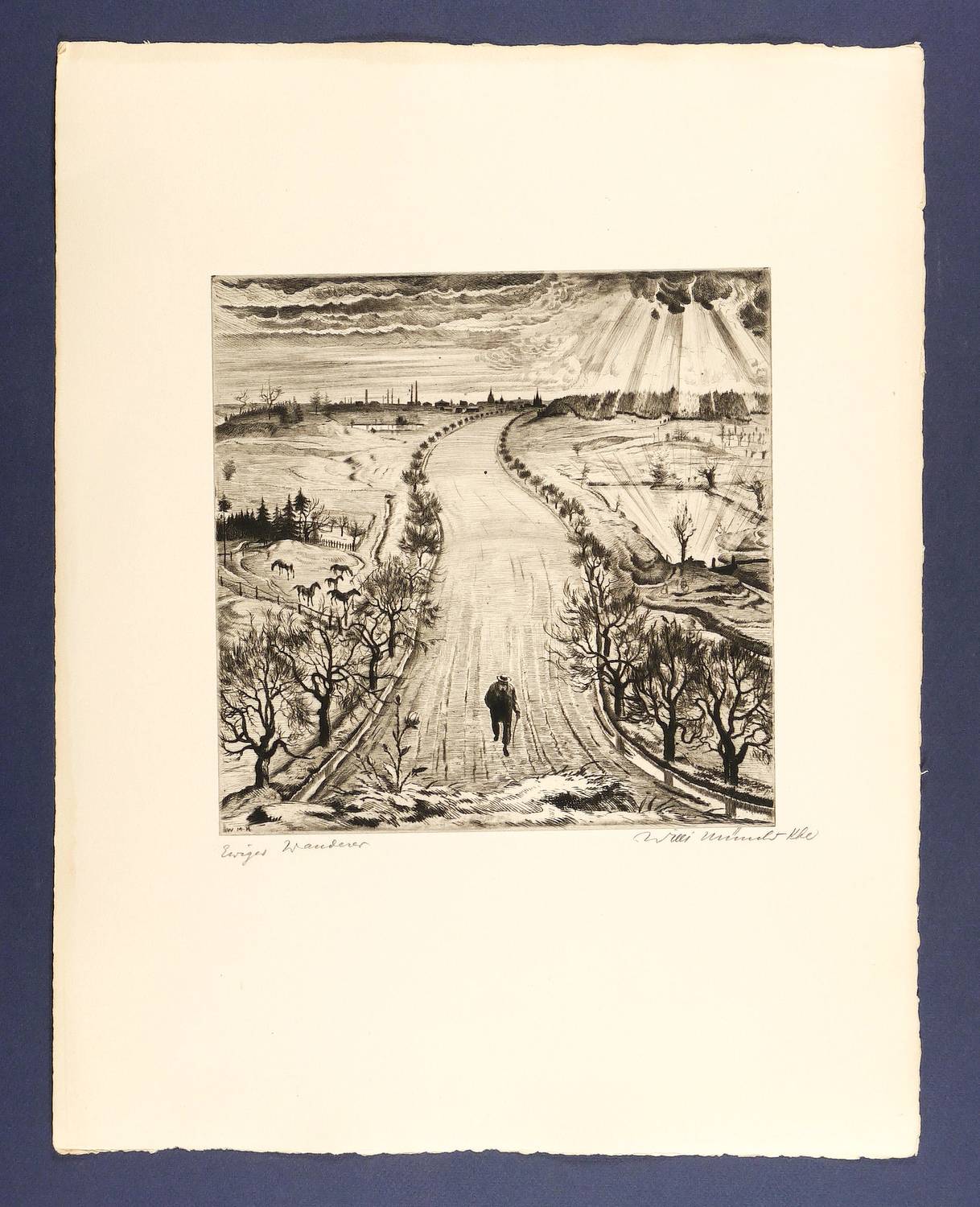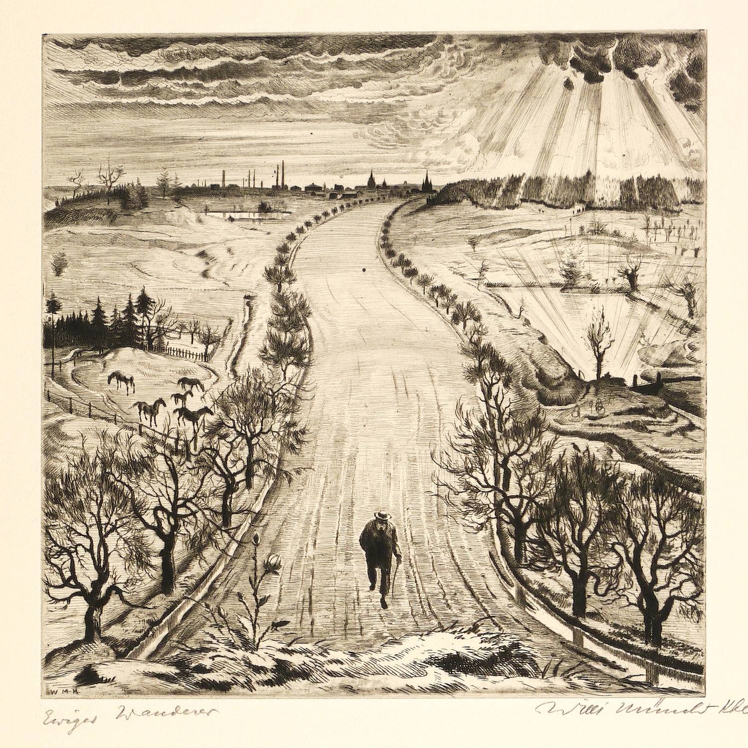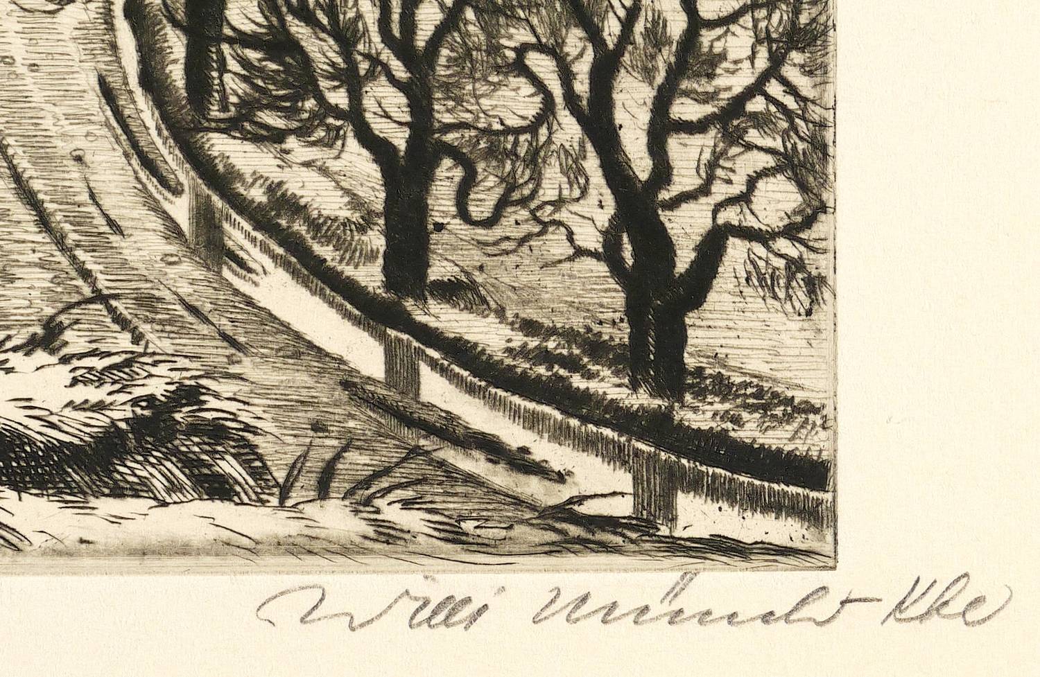 Rechts unten in Bleistift signiert. Links Titel. In der Platte links unten signiert: ″W M-K″. Verso Stempel der Kunstdruckerei Künstlerbund Karlsruhe (KKK) mit handschriftlicher Katalognummer ″100″. – Originalrandiges Exemplar. Sehr gut erhalten.
